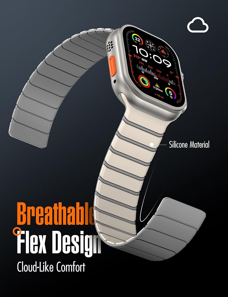 【لينة على الجلد ، صعبة على ارتداء】 مصنوعة من السيليكون الممتاز وصديقة للبشرة ، هذه النطاق المتوافق مع النطاق المغناطيسي Apple Watch ناعم ومرن للغاية ، ستلاحظ بالكاد وجوده هناك. من الصعب بما يكفي للتعامل مع المجففات اليومية ومقاومة للتكسير أو التلاشي بمرور الوقت ، وسهلة التنظيف من خلال مسح سريع. سواء كنت تعمل أو تدريب أو حياة حية فقط ، فإن هذه الفرقة متوافقة مع فرق Apple Watch Ultra 2/3 للرجال تشعر بالضوء على معصمك - ولكن تم تصميمها لتستمر.