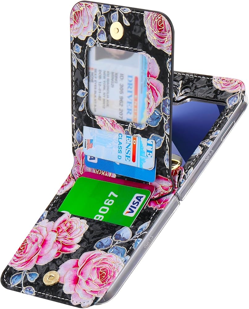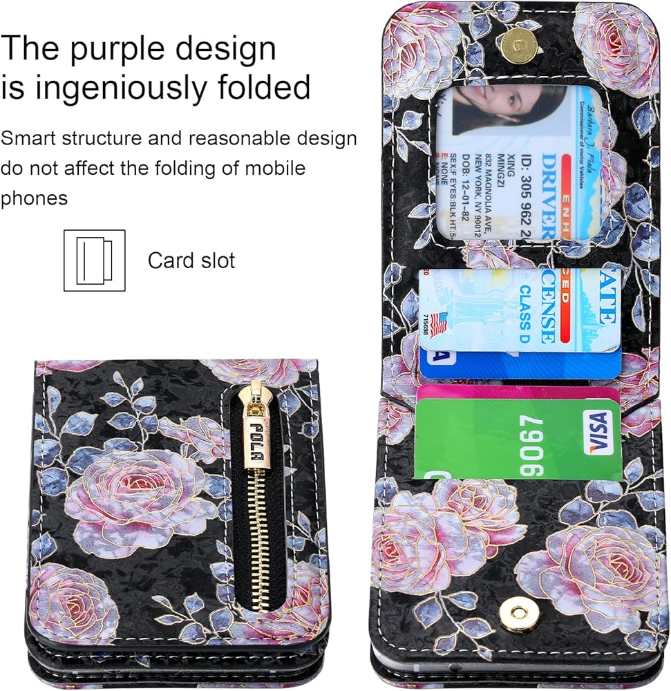 التصميم البشري: تم تجهيز حالة الهاتف لـ Samsung Galaxy Z Flip 6 بـ 4 فتحات بطاقات ، والتي يمكنها الاحتفاظ بطاقات الائتمان وبطاقات الهوية والعملات المعدنية. إنه غطاء هاتفي مع موقف قوي. حالة الهاتف ، المحفظة ، والهاتف تقف الثالثة في واحد. مناسب للاستخدام اليومي مثل السفر والتسوق والمشي وما إلى ذلك
