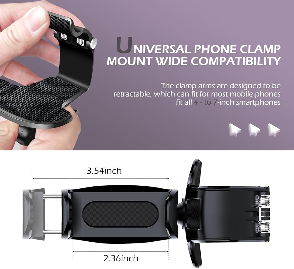 Torsion Spring Clamping Function: The clamp of the holder adopts the torsion spring principle, which is able to ensure a solid clamping of the phone, and the phone can be securely fixed on the holder even during driving.