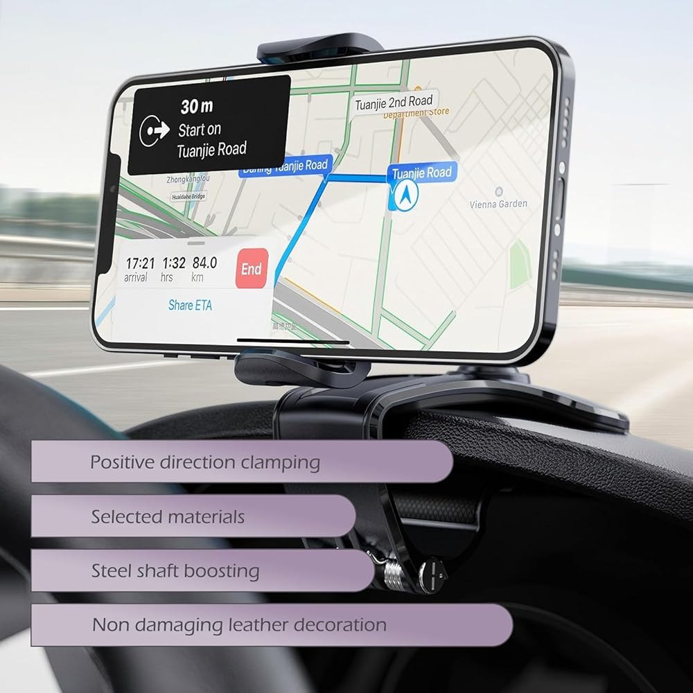 The clamp of the car navigation mount uses the torsion spring principle, which ensures a firm grip on the phone and holds it firmly in the mount even while driving.
