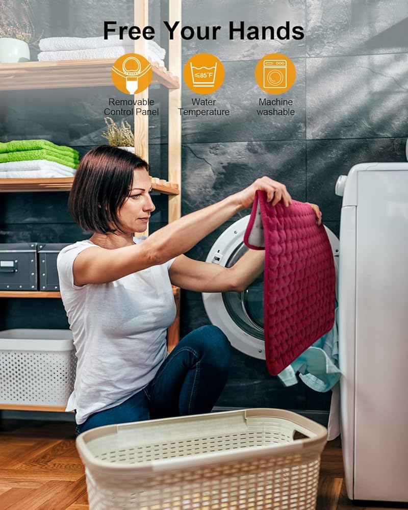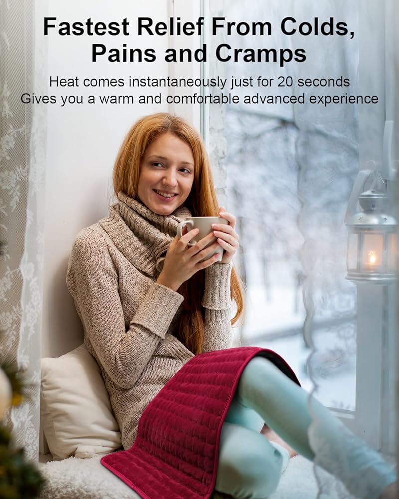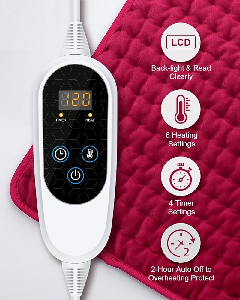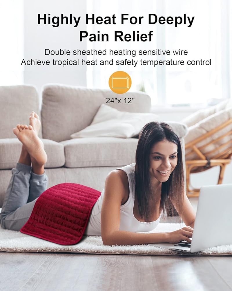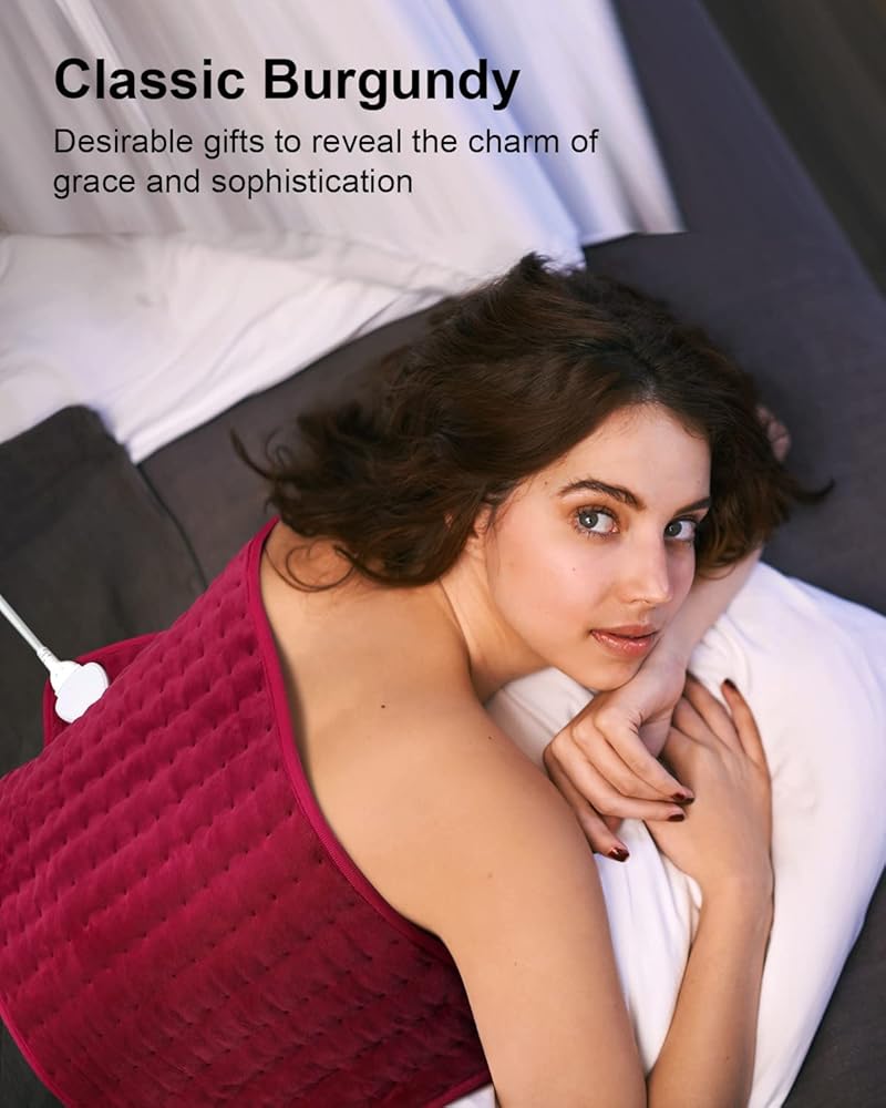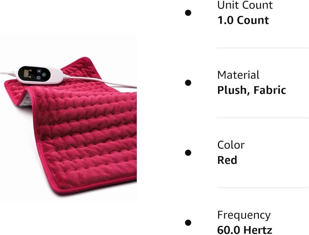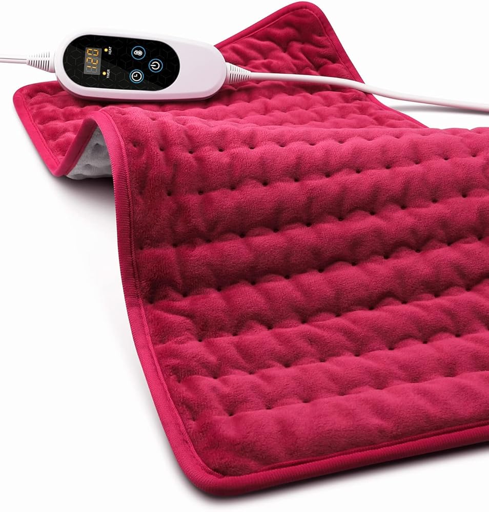 وسادة تسخين لتخفيف الآلام، وسادات تسخين كهربائية للتشنجات وتخفيف آلام الظهر، وسادة حرارية رطبة/جافة لألم الرقبة والكتف، هدايا للنساء والزوجة الأم، مقاس 24 × 12 بوصة كبيرة مع إيقاف تلقائي (أحمر)