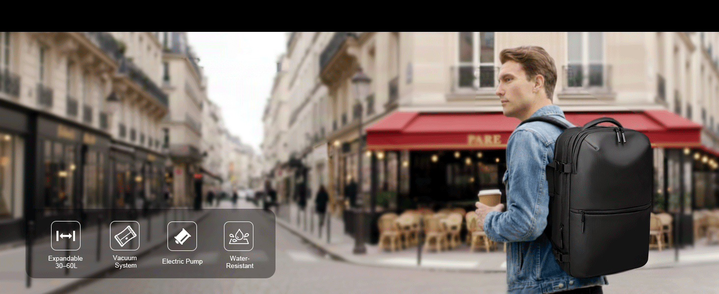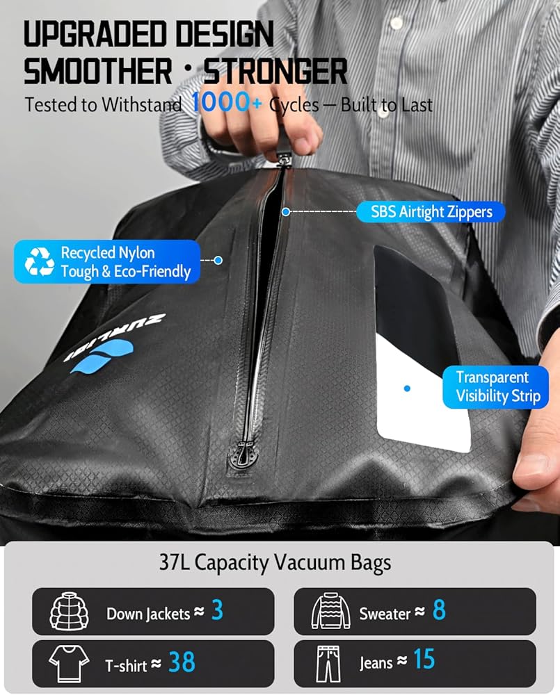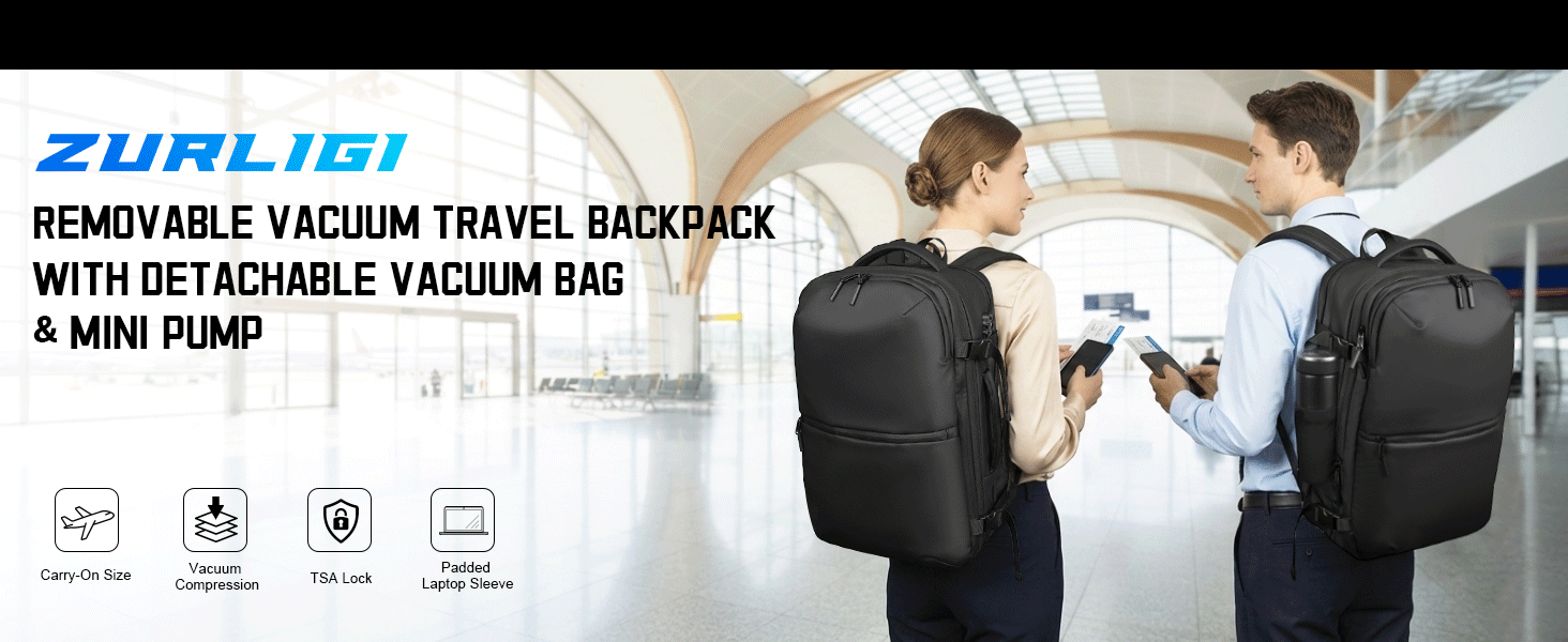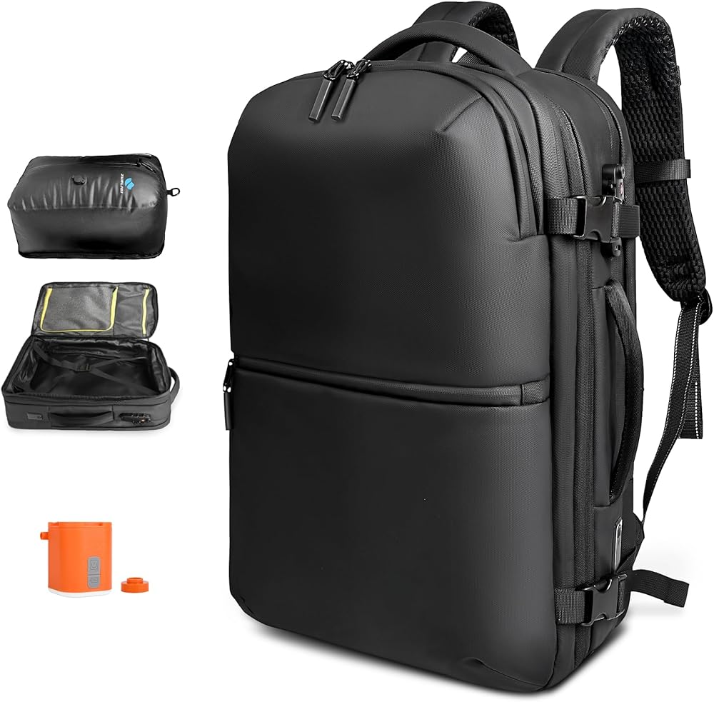 حقيبة ظهر للسفر بضغط الهواء قابلة للإزالة من Zurligi مع حقيبة مكنسة كهربائية قابلة للفصل ومضخة كهربائية، حقيبة ظهر قابلة للتوسيع بسعة 30-60 لتر مع قفل TSA، ومنفذ USB، مقاومة للماء