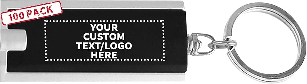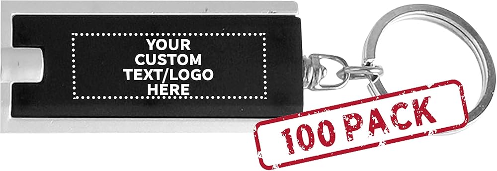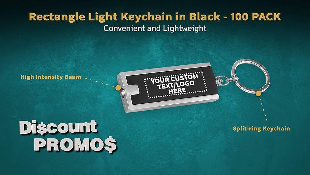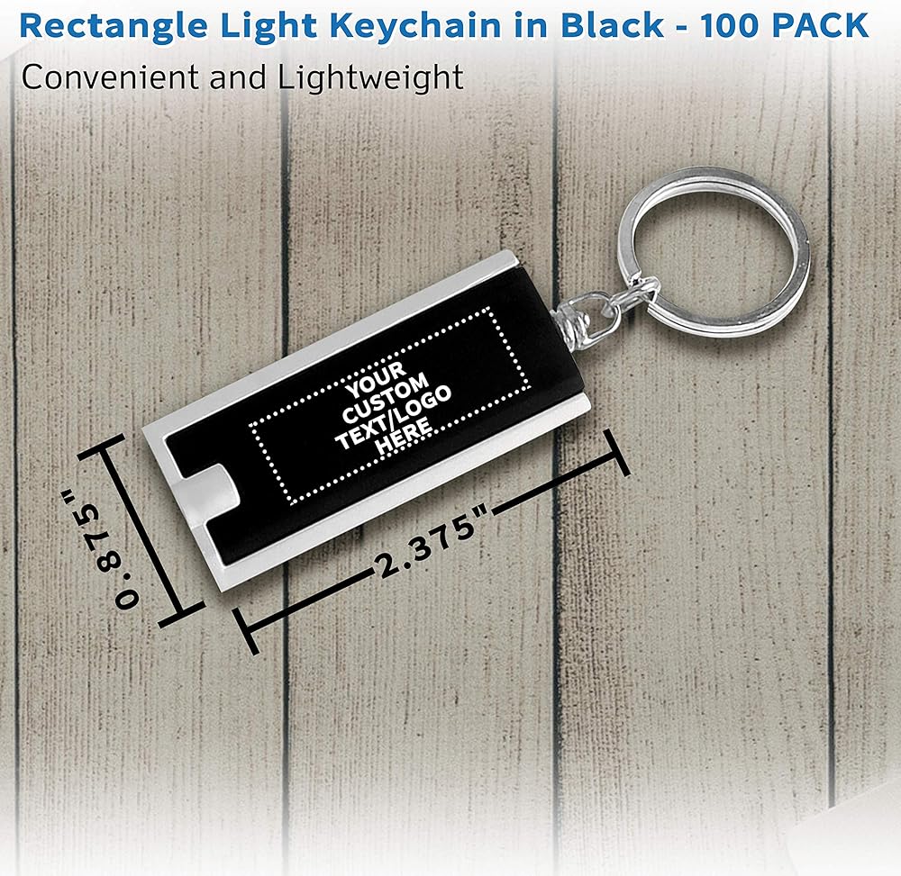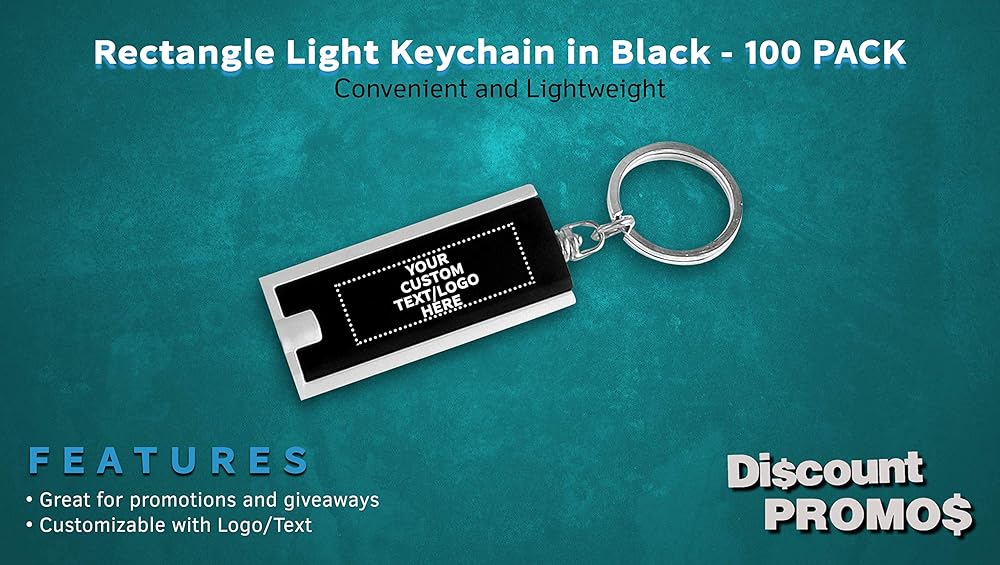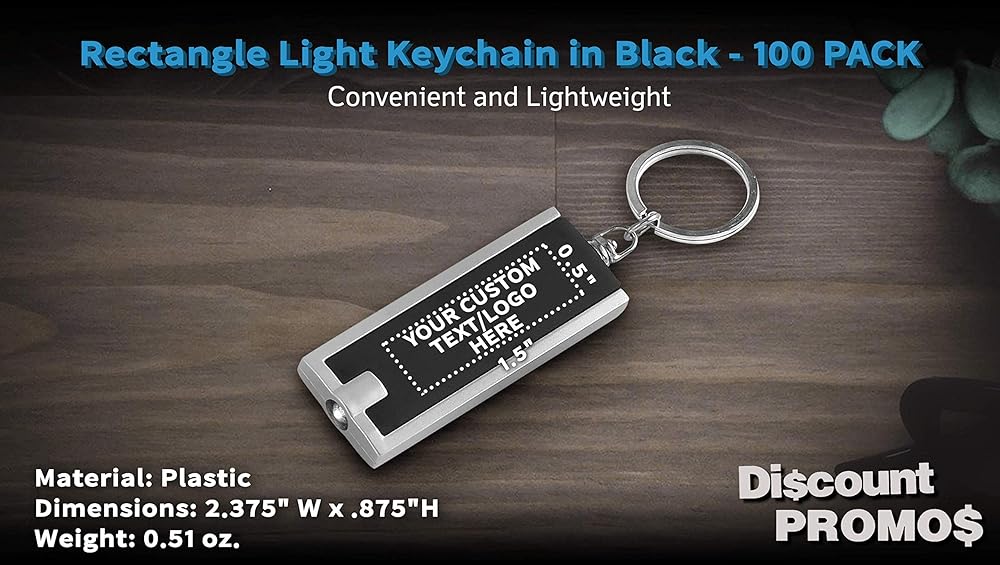 خصم Promos 100 حزمة مفاتيح المصباح - نص قابل للتخصيص ، شعار - مستطيل ، بلاستيك - أسود