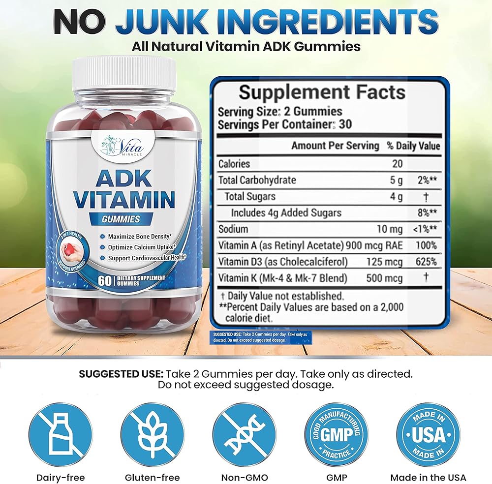 • يساعد مكمل فيتامين ADK على تنشيط كل من A وD3 للمساعدة في امتصاص الكالسيوم - ويمكن أن يساعد أيضًا في دعم تقليل تراكم التكلس في الشرايين