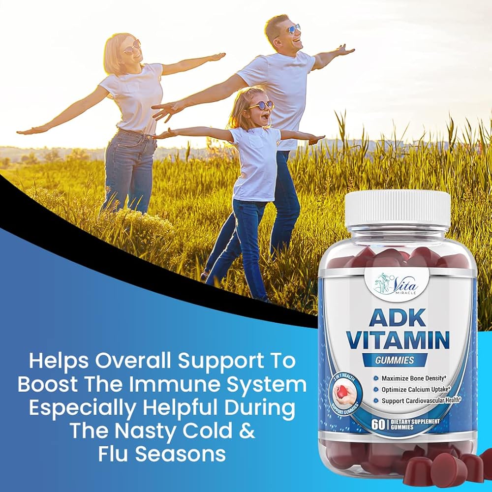 • احصل على جرعتك اليومية الكاملة من فيتامين ADK في قطعتين من العلكة اللذيذة يوميًا - سيحبها جميع أفراد العائلة