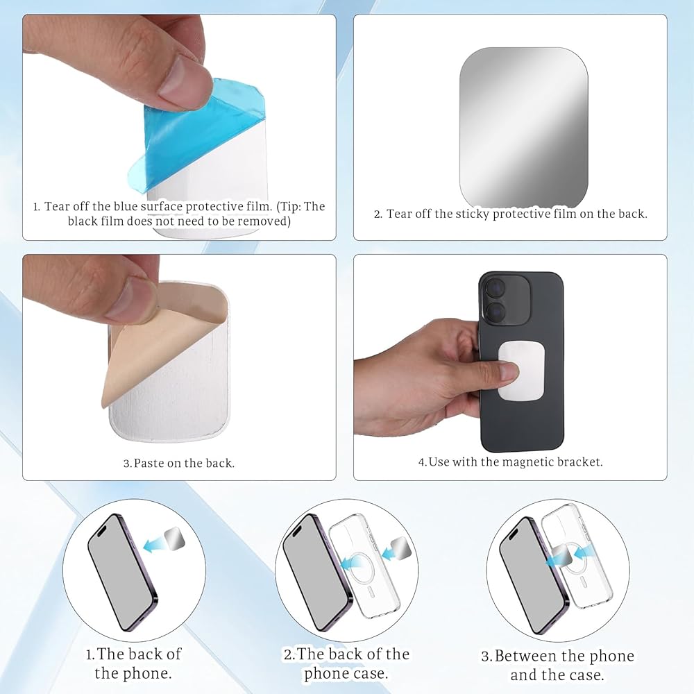 Suitable for magnetic brackets: Bruislard's metal plates for phone magnets are just metal plates for magnetic brackets. They are non-magnetic and can enhance your magnetic installation experience. They are designed to provide a safe and stable fixation for your device