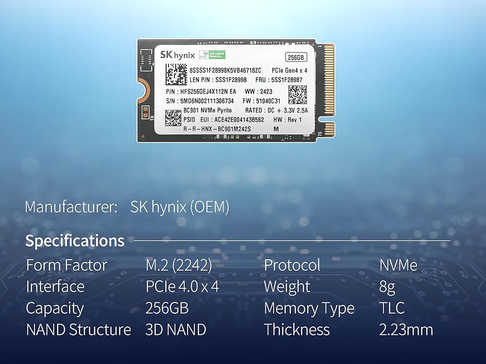 • Includes Reliable 256GB SK OEM SSD – NVMe 2242 SSD based on the SK BC901 model, selected for proven compatibility with RPi OS.