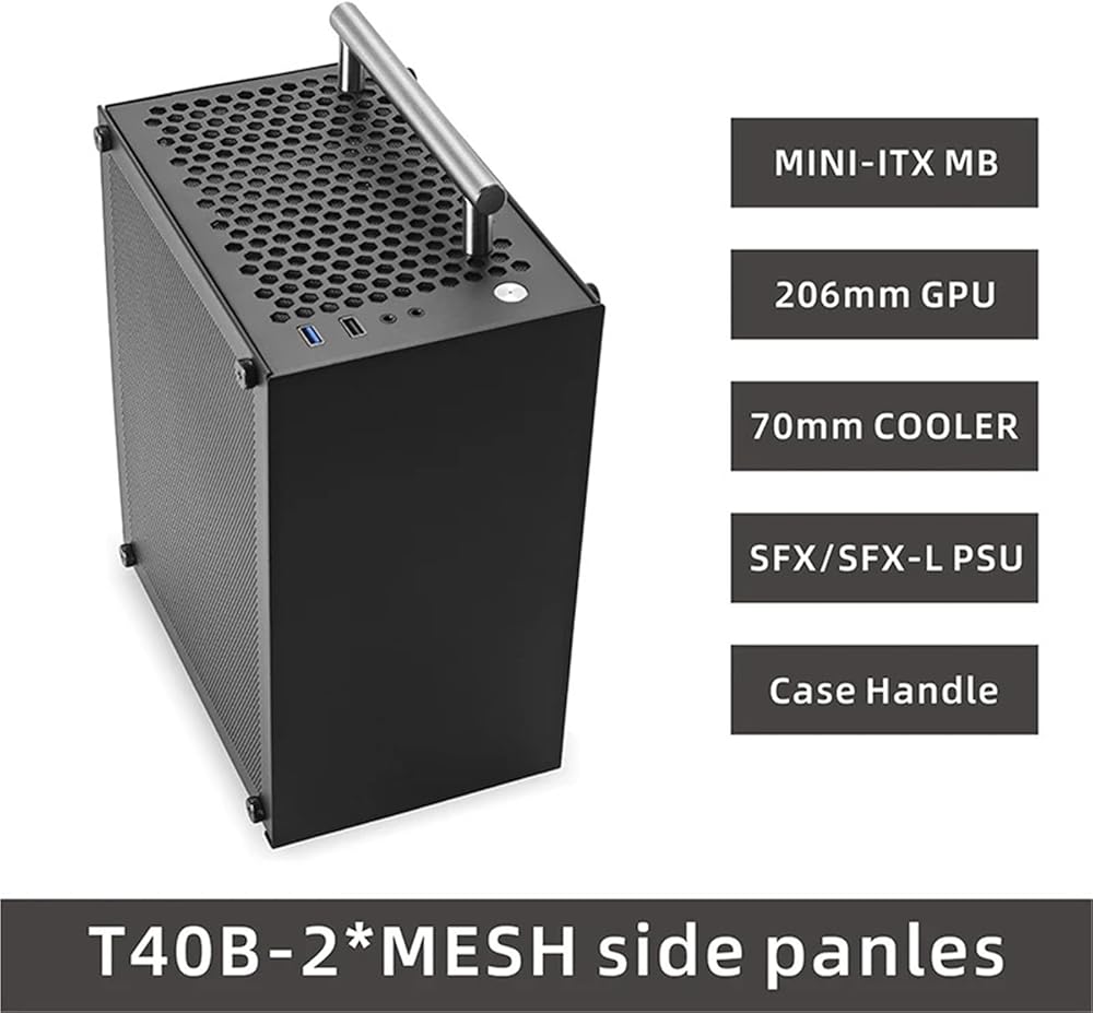 EWAIDI T40 Mini ITX Black Case 7L Gaming Computer Chassis Compact transparent PC Support SFX PSU/70mm Cooler With Handle