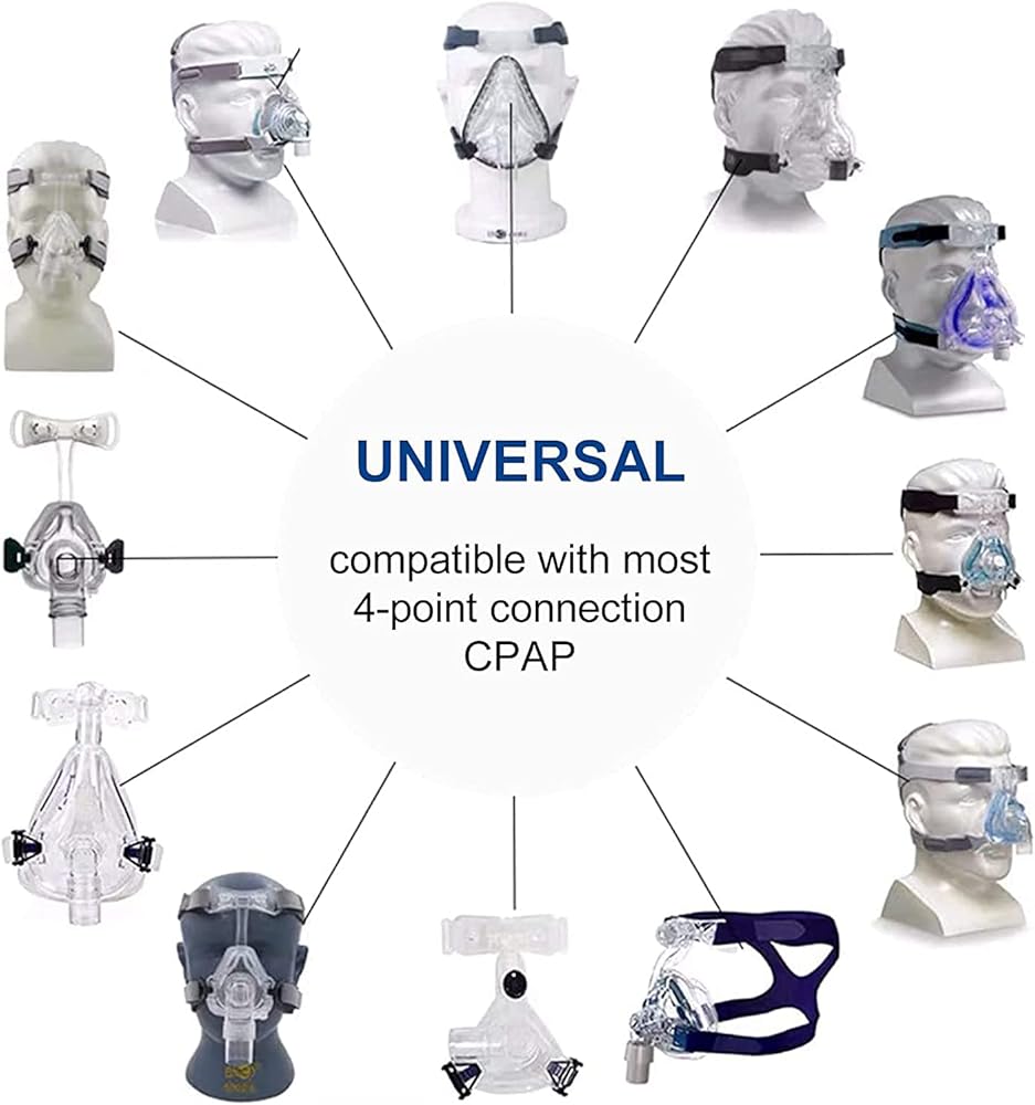 【توافق واسع】حزام الرأس البديل العالمي الخاص بنا متوافق مع مجموعة واسعة من أقنعة CPAP لريسميد إيرفيت F20 N10 وقناع الوجه الكامل رباعي النقاط. يرجى الاطلاع على الاستخدامات المحددة لحزام الرأس في الصورة الثانية.