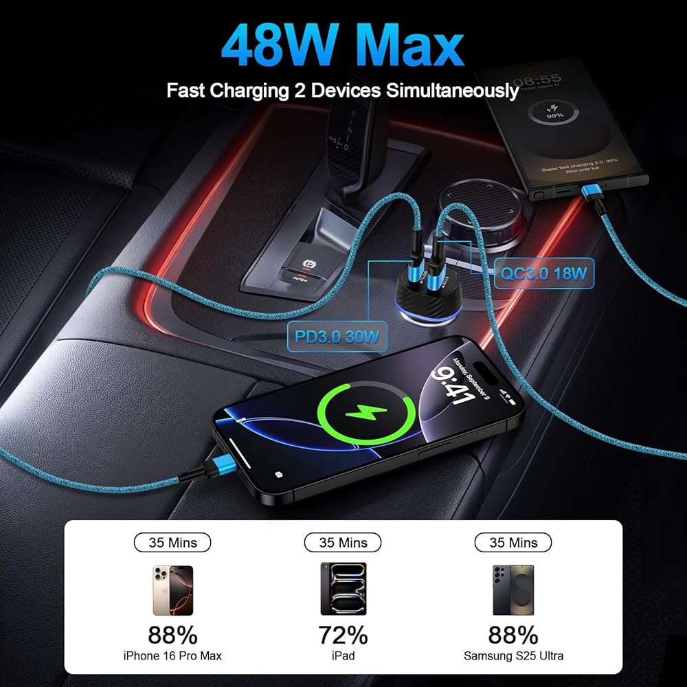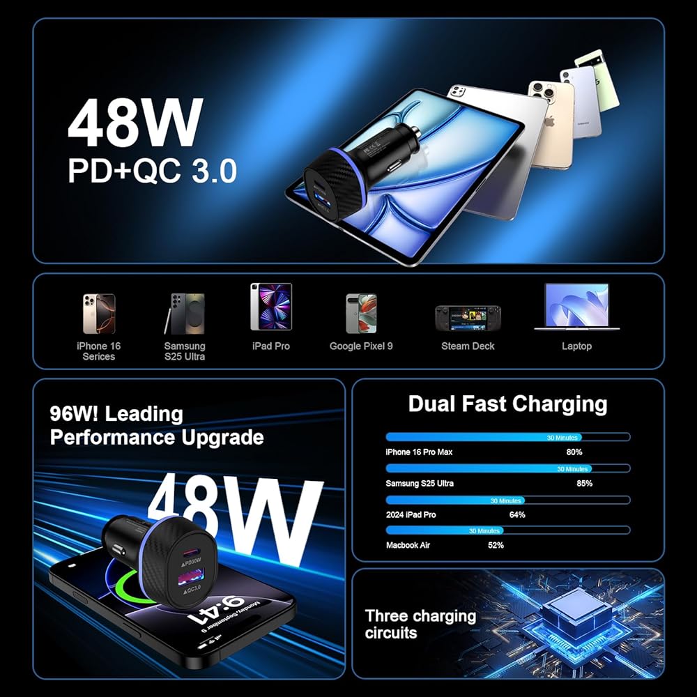 Professional-grade 48W output delivers 0-100% charge for latest iPhone 16e/16 pro max before your coffee break.