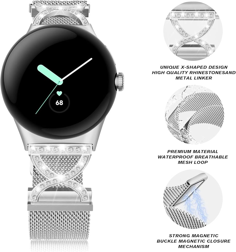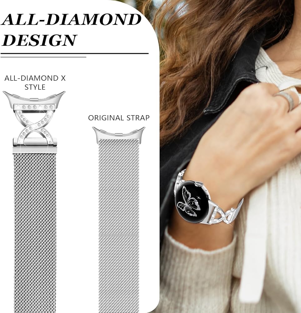 【التصميم الفريد】: على أساس التصميم الكلاسيكي ، تتم إضافة زخرفة معدنية على شكل X ، كما أن السطح مرصع أيضًا بالماس ، مما يجعل الشريط أكثر روعة وأنيقة. تصميم بسيط وأنيق وأنيق ، مثالي لأولئك الذين يرغبون في ارتداء ساعتهم الذكية.