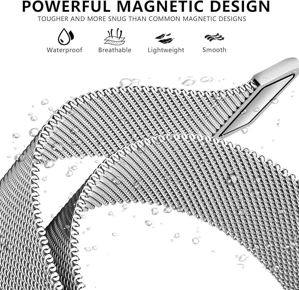 【Magnetic Magnetic وقابلة للتعديل】: موصل المغناطيسي وتصميم حلقة الشبكة يجعل حزامك أكثر مرونة لضبط الطول. من السهل ارتداء وضبط الطول لتناسب معصمك تمامًا. Durable and no extra tools required.