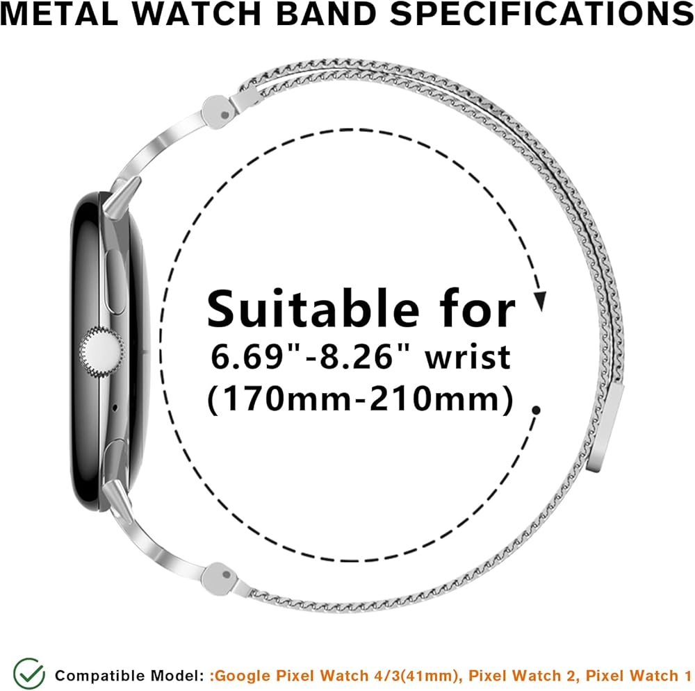 【النماذج المتوافقة】: متوافقة مع Google Pixel Watch 4/3 41mm Band ، Google Pixel Watch 2 Band ، Google Pixel Watch Band. يناسب أحجام المعصم 6.69 ''-8.26 ''. ملاحظة : يرجى التحقق من نموذج الساعة قبل الطلب لتجنب الحجم الخاطئ.