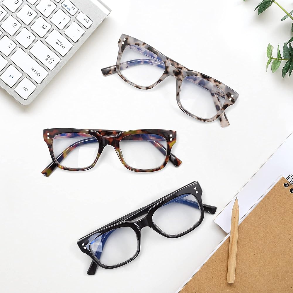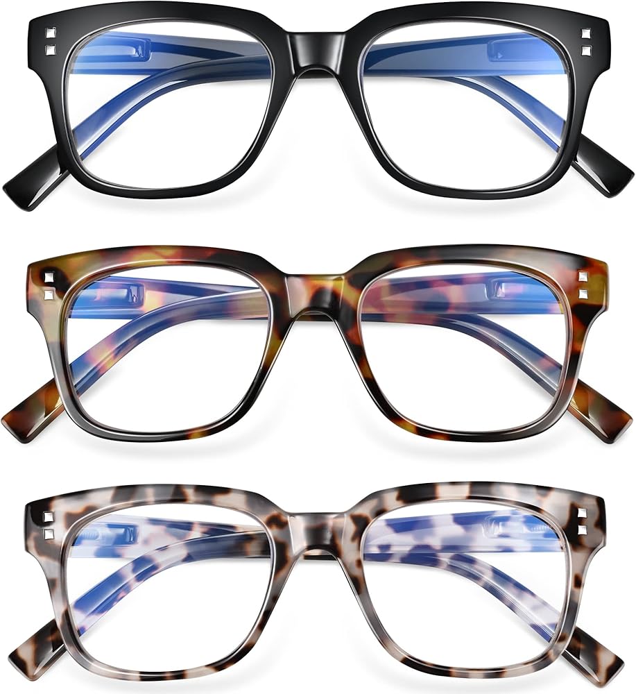 【عبوة هدايا ذات قيمة رائعة مكونة من 3 عبوات】قارئات مانعة للضوء زرقاء مصنوعة بشكل رائع مع حقيبة ناعمة وقطعة قماش للتنظيف بسعر معقول، هدية مثالية لوالديك وكبار السن.