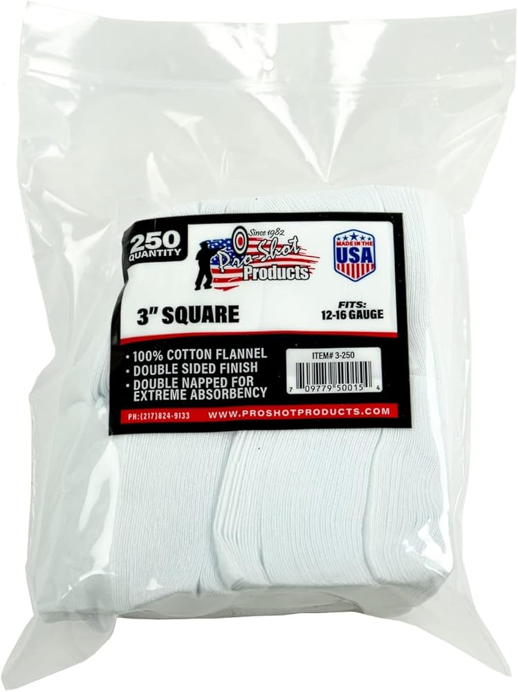 Pro-Shot 100-Percent Cotton Flannel Finished Both Sides Cleaning Patches have become known worldwide for Superior Consistency and Cleaning Power