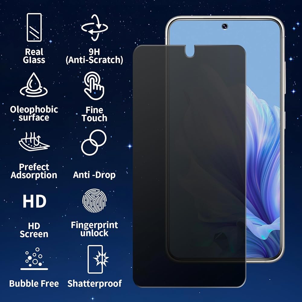 • Support Fingerprint Unlock Samsung Galaxy S25 privacy screen protector is made of ultra-thin tempered glass, which enables you to achieve 0.1s fast fingerprint unlocking, eliminating the annoyance that screen protection and fingerprint unlocking can not coexist. Be sure to clean the screen before applying the film, air bubbles and dust will affect the fingerprint unlocking. (Please make sure you re-register your fingerprint after installing the screen protector)