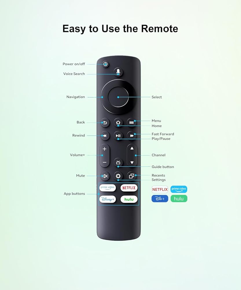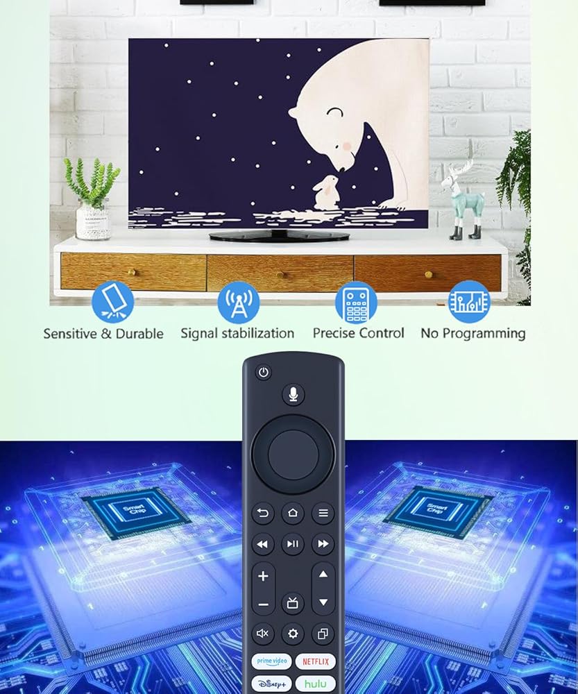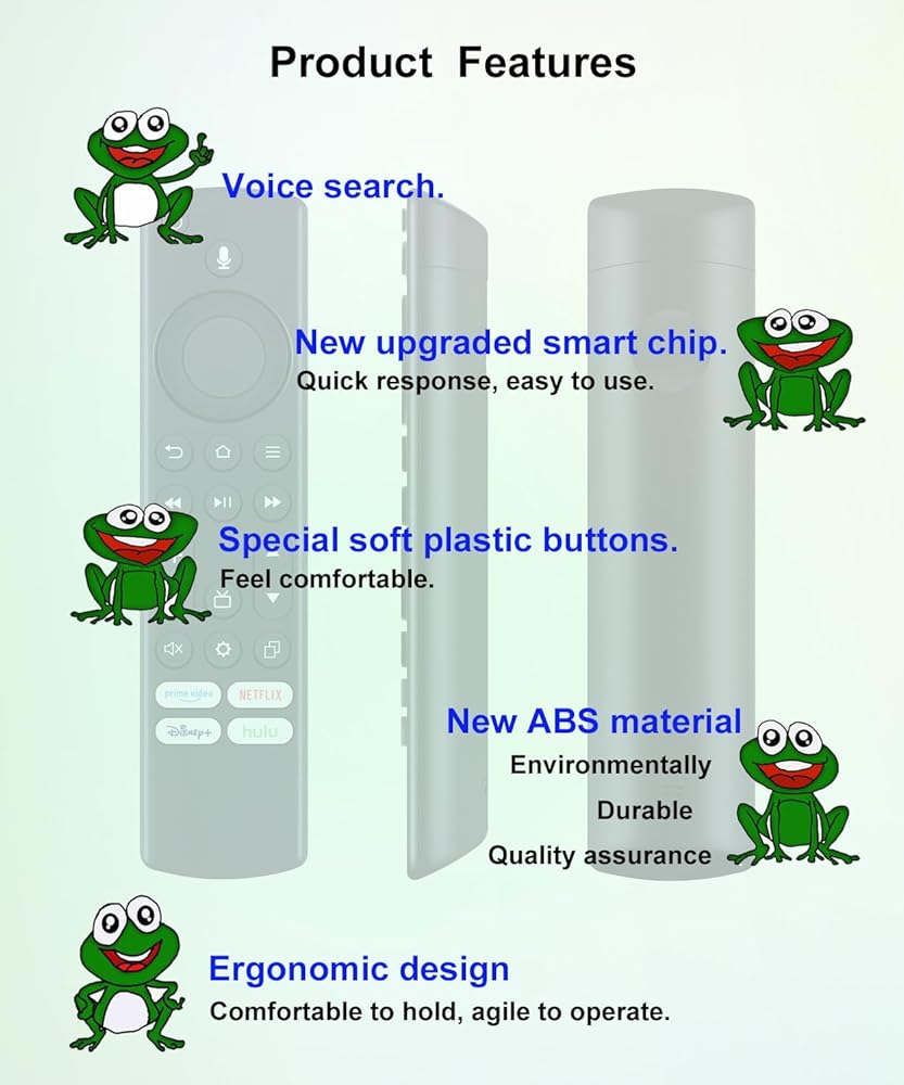 【Product Features】Voice search; With 4 shortcuts Netflix/Prime Video/Disney/hulu and Home button; Ergonomic design, comfortable to hold, agile to operate; Pre-Programmed, no program or set up required, just insert 2 *1.5V AAA batteries to get it work; New ABS material, environmentally durable; Response quickly.