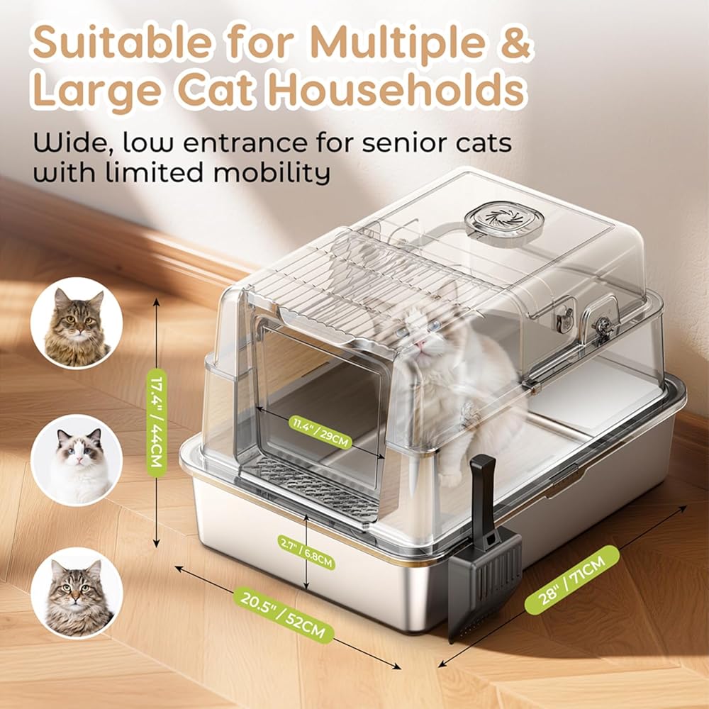 • 【تصميم سعة كبير + 80L】 XXL يقيس صندوق القمامة على مدار 24 "× 16" × 15.6 ". وصول المساحة المرفقة إلى 80 لترًا ، مما يوفر مساحة واسعة للقطط. مثالية للسلالات الكبيرة مثل مين كونز/رادوولز (أقل من 30 رطلاً). إضافة 20 رطلاً-السفر أو العمل خالية من القلق لأسابيع.