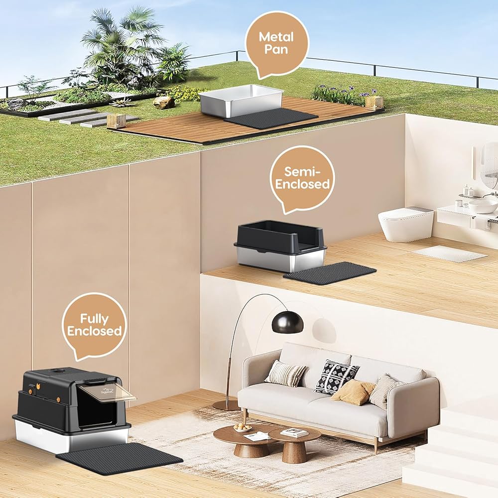 • design التصميم المبتكر على قمة الوجه + مجموعة من 3 طبقات】 يتميز صندوق فضلات القطط المغطاة بالفولاذ المقاوم للصدأ بتصميم باب فليب ، مما يجعل التنظيف بسيطًا وبدون مجهود. افتح الغطاء بسهولة للتنظيف دون إزالة الغطاء بأكمله. من خلال قذيفة سهلة التجميع 3 طبقات قابلة للفصل ، فإنه يوفر تكوينات مغلقة بالكامل وشبه.
