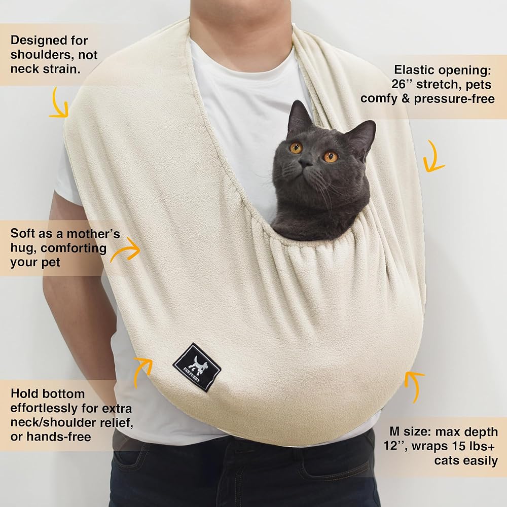 🐾 تصميم Cozy Cuddle - تم تصميم Pawpubby Cat Sling خصيصًا للاستخدام المنزلي ، مما يمنح قطتك أو كلب صغير مكانًا ناعمًا وآمنًا للوقوف على قرب أثناء الاسترخاء.