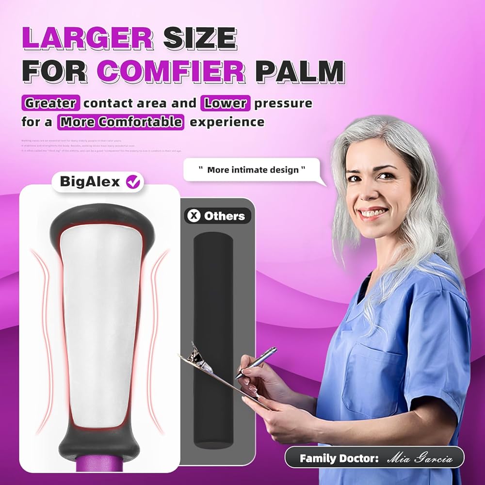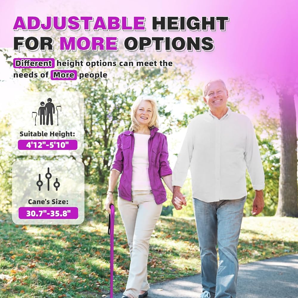 قبضة سهلة الاستخدام: قصب المشي الإزاحة هذا المصمم للاستقرار والدعم مع مقبض TPR الناعم. مثالية للبالغين المسنين ، كل من الرجال والنساء. رفيق موثوق للأنشطة اليومية والمغامرات في الهواء الطلق. لا التعب حتى بعد يوم من الاستخدام