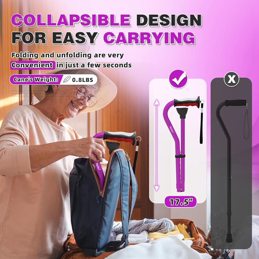 التصميم الخفيف الوزن والانهيار: سواء كنت تفتح قصب النقطة الفردية أو طيها ، فإن الأمر يستغرق بضع ثوانٍ فقط للقيام بذلك. حجم طي هو 17.5 فقط ". إن طبيعةها الخفيفة تجعل هذه العصي لكبار السن من السهل حملها ، وضمان الاستخدام طويل الأمد دون المساس بالاستقرار