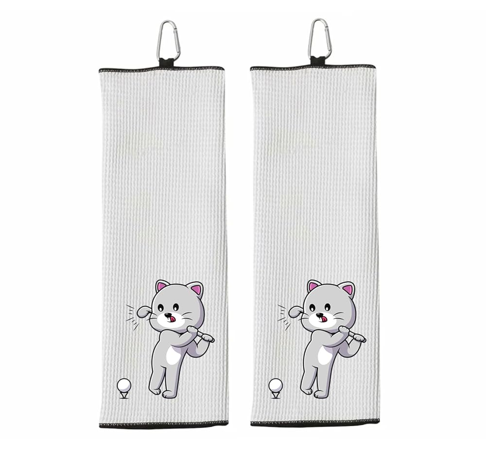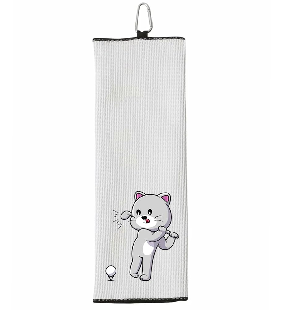 Cat Golfer 100% Microfiber Waffle Weave Golf Towel is hand printed with love in our California workshop using an eco-friendly and non-toxic dye process, this towel is the ideal accessory for men with a sense of humor who enjoy spending time on the golf course.