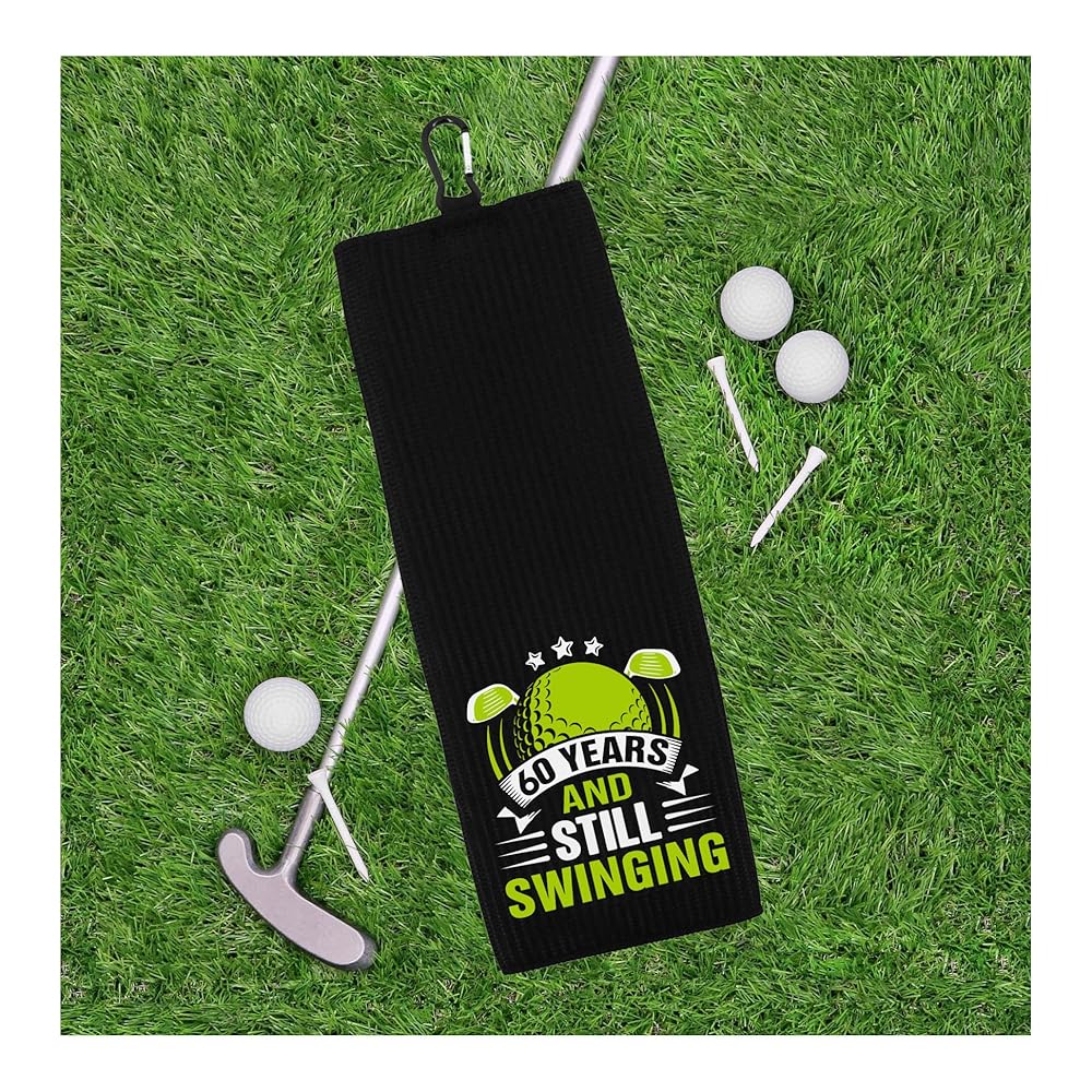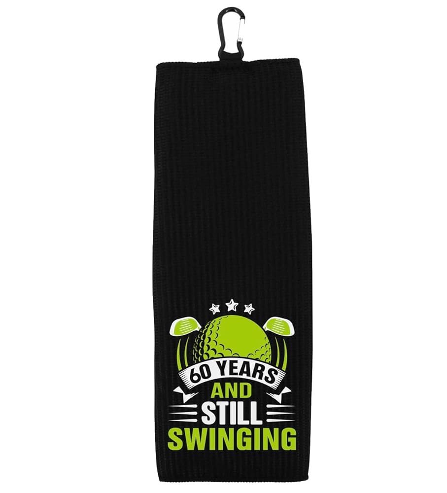 60 Years and Still Swinging 100% Microfiber Waffle Weave Golf Towel is hand printed with love in our California workshop using an eco-friendly and non-toxic dye process. This towel is the ideal accessory for men turning 60 who enjoy spending time on the golf course.