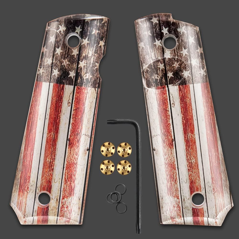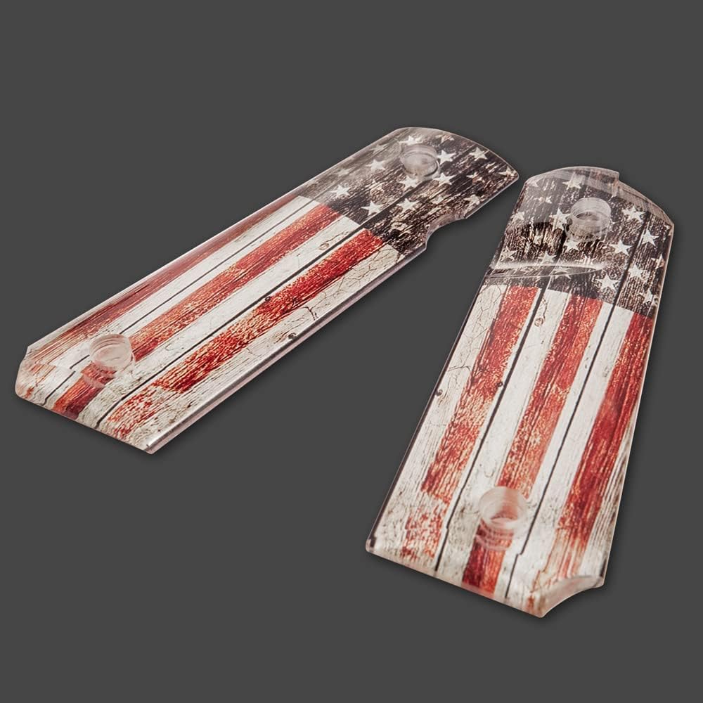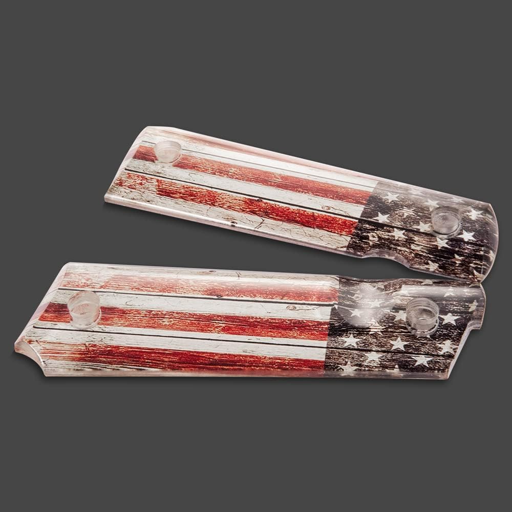 بارد اليد 1911 قبضة ، أكريليك مصقول عالية ، مع علم الولايات المتحدة الأمريكية الوطنية ، الحجم الكامل (الحكومة/القائد) ، براغي الذهب بما في ذلك ، Cut Safety Cut