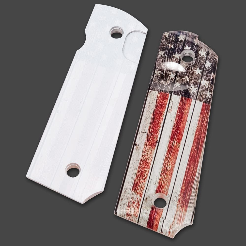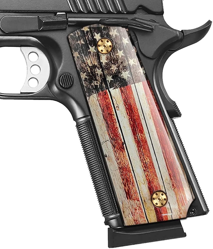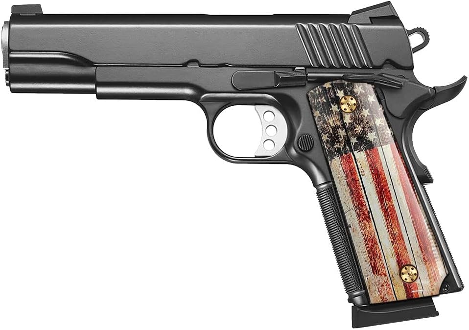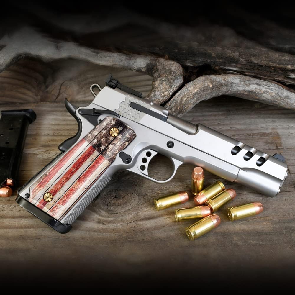 بارد اليد 1911 قبضة ، أكريليك مصقول عالية ، مع علم الولايات المتحدة الأمريكية الوطنية ، الحجم الكامل (الحكومة/القائد) ، براغي الذهب بما في ذلك ، Cut Safety Cut