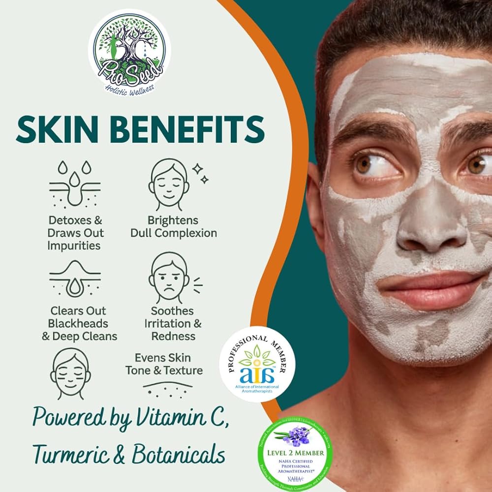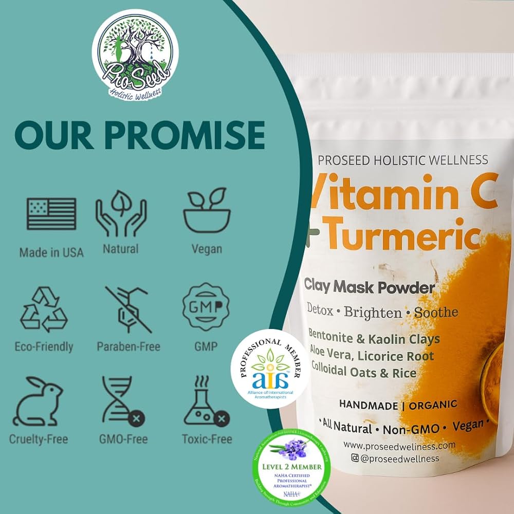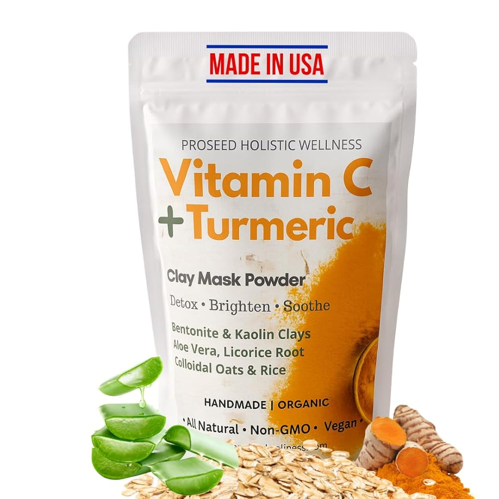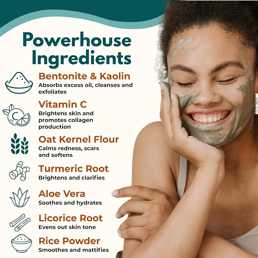 قناع طين فيتامين C الكركم C - قناع للوجه والجسم مع منصات ، الألوة والطين الطبيعي للبشرة الحساسة ، والمسام ، ومظهر العيب ، وحتى ندبات البشرة ، والبشرة الباهتة ، والرؤوس السوداء
