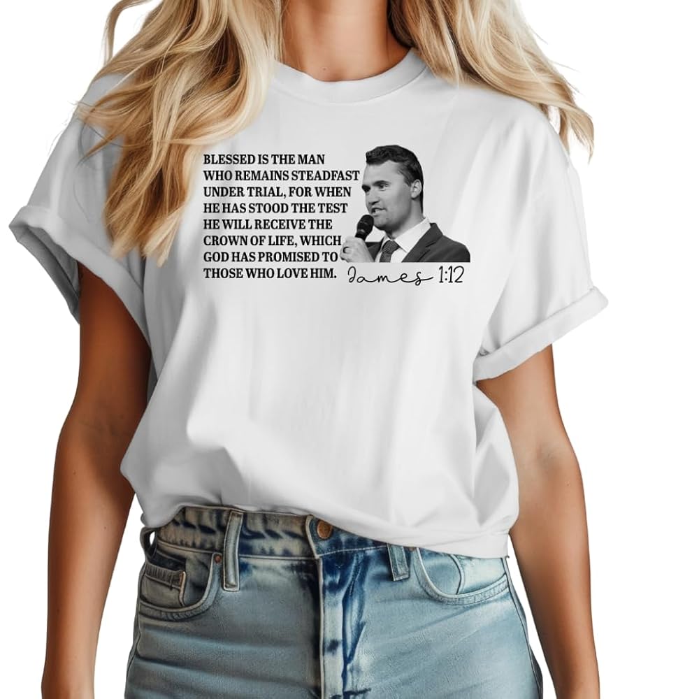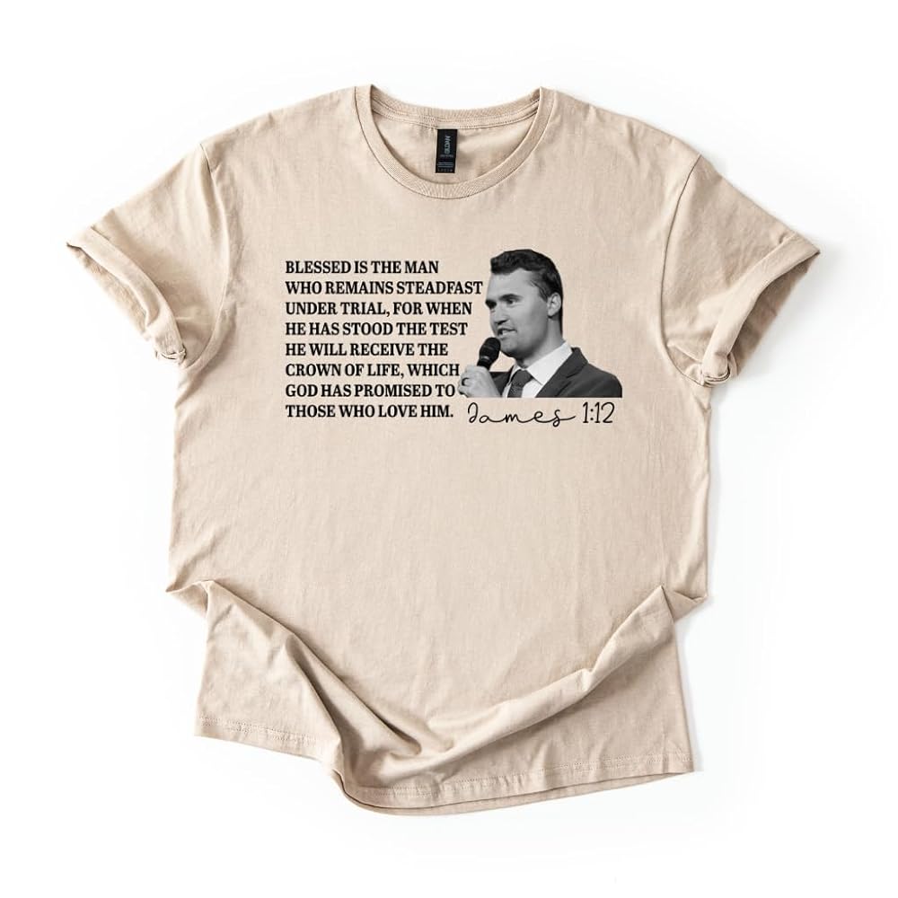 Honor the memory of Charlie Kirk with this meaningful Christian memorial shirt featuring the powerful words of James 1:12. The scripture reminds us of strength, perseverance, and God's promise to those who remain steadfast in faith. Made with high-quality fabric, this shirt offers comfort and durability while carrying a message of hope and belief. Whether you're looking for a religious faith gift, a memorial tribute, or a shirt to wear at church, gatherings, or daily life, this tee is a thoughtful choice. With its classic unisex fit, it makes a perfect addition to any Christian wardrobe and serves as a lasting reminder of courage, love, and God's word.