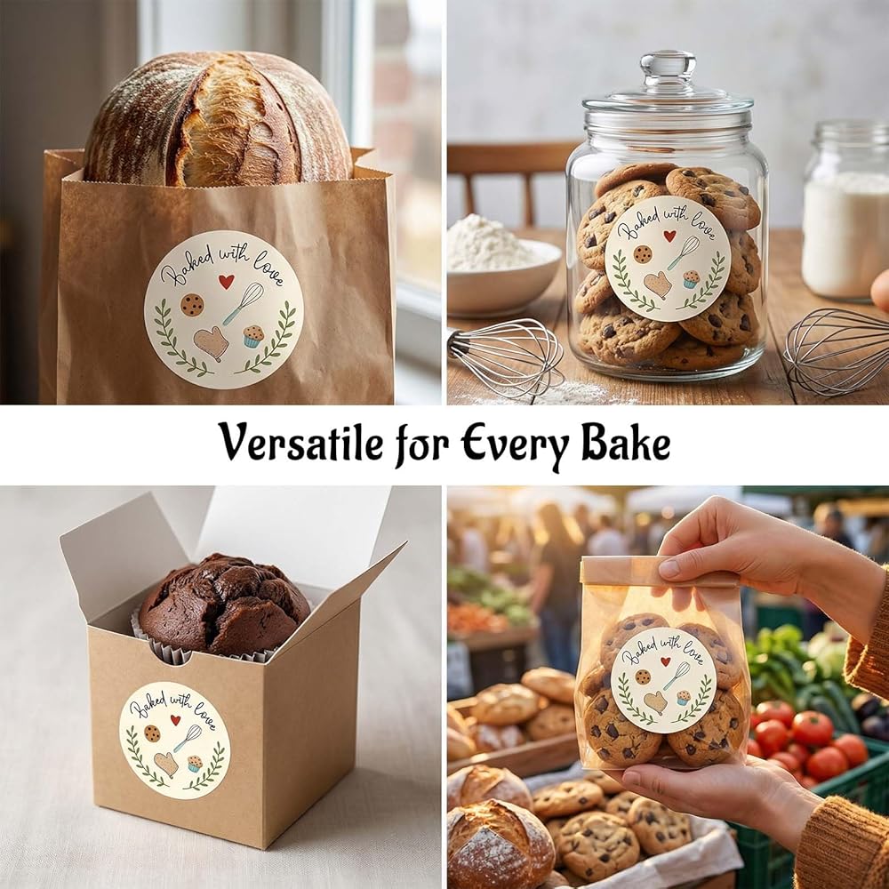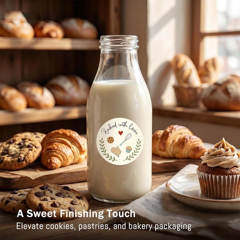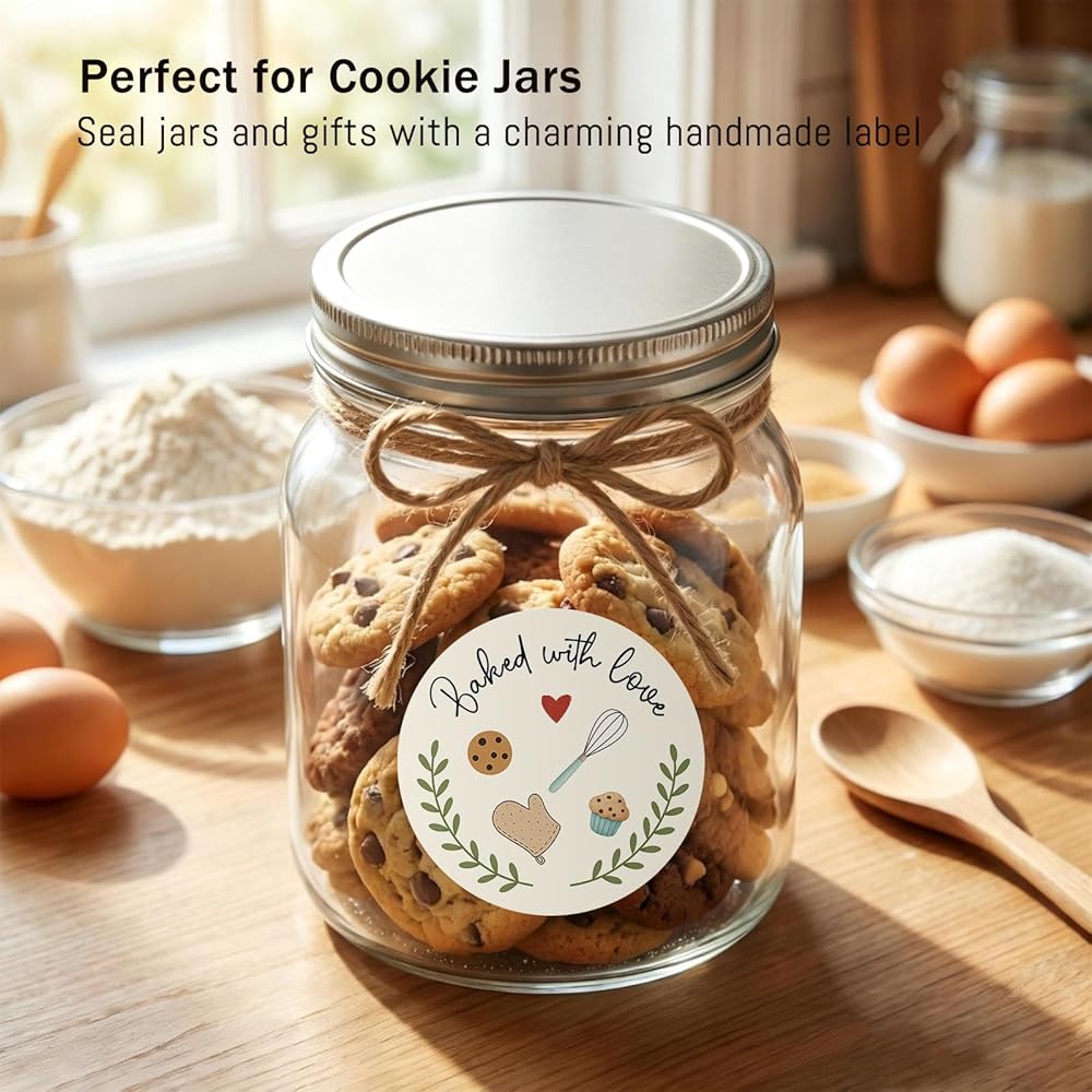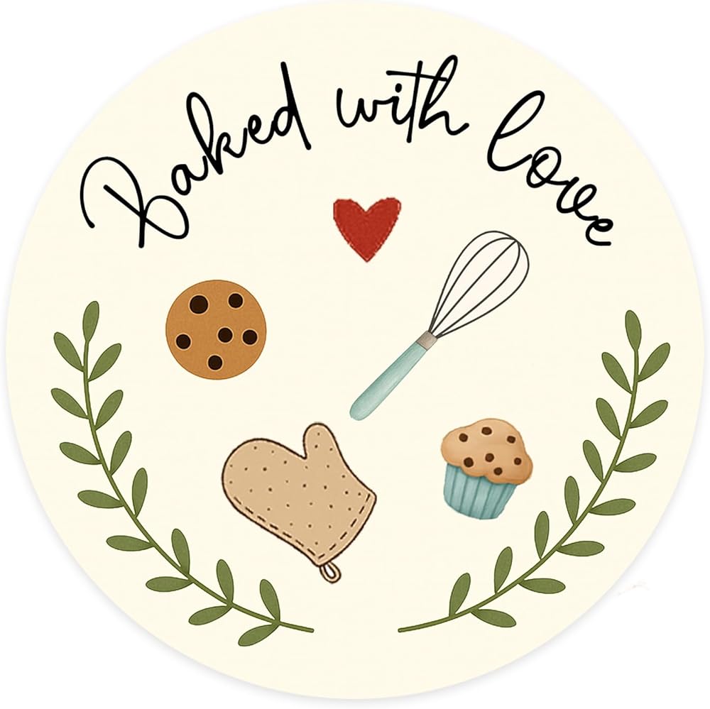 Add a warm, handmade touch to your baked goods with our Baked with Love Stickers. These 1.6 inch round baking labels are printed with a charming “Baked with Love” message, perfect for sealing cookie bags, bread wraps, cupcake boxes, jars, and gift bags. Made from high-quality adhesive paper, they stick securely to most packaging surfaces and are easy to apply. Ideal for home bakers, small bakeries, and anyone who loves sharing homemade treats.
