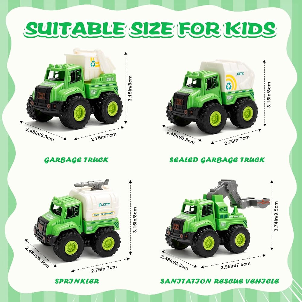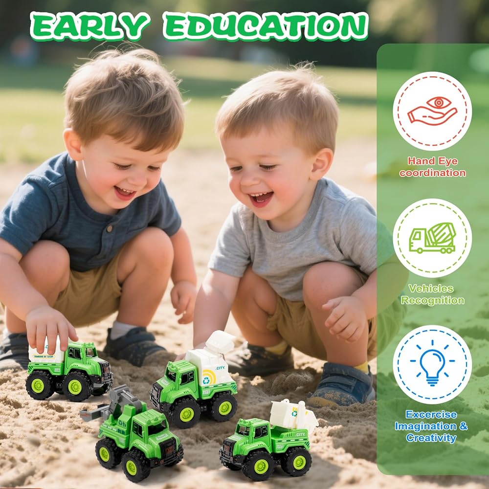 🚧【 مجموعة شاحنة البناء 4 في 1-تتضمن خلاط الأسمنت وشاحنة تفريغ وحفارة وجرافة. مثالي للأطفال الصغار الذين يحبون الحفريات والبناء واللعب الخيالي.