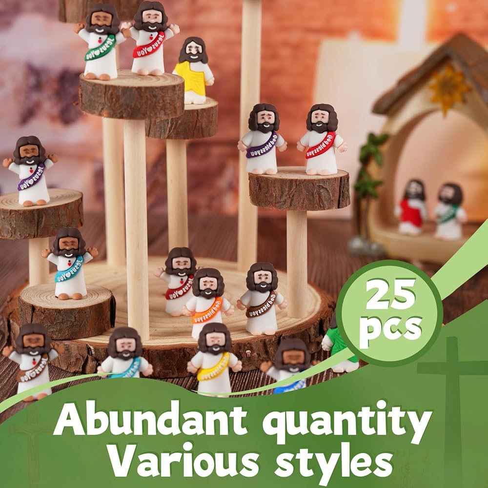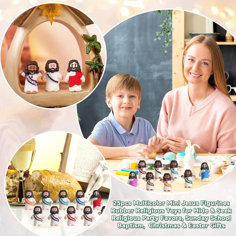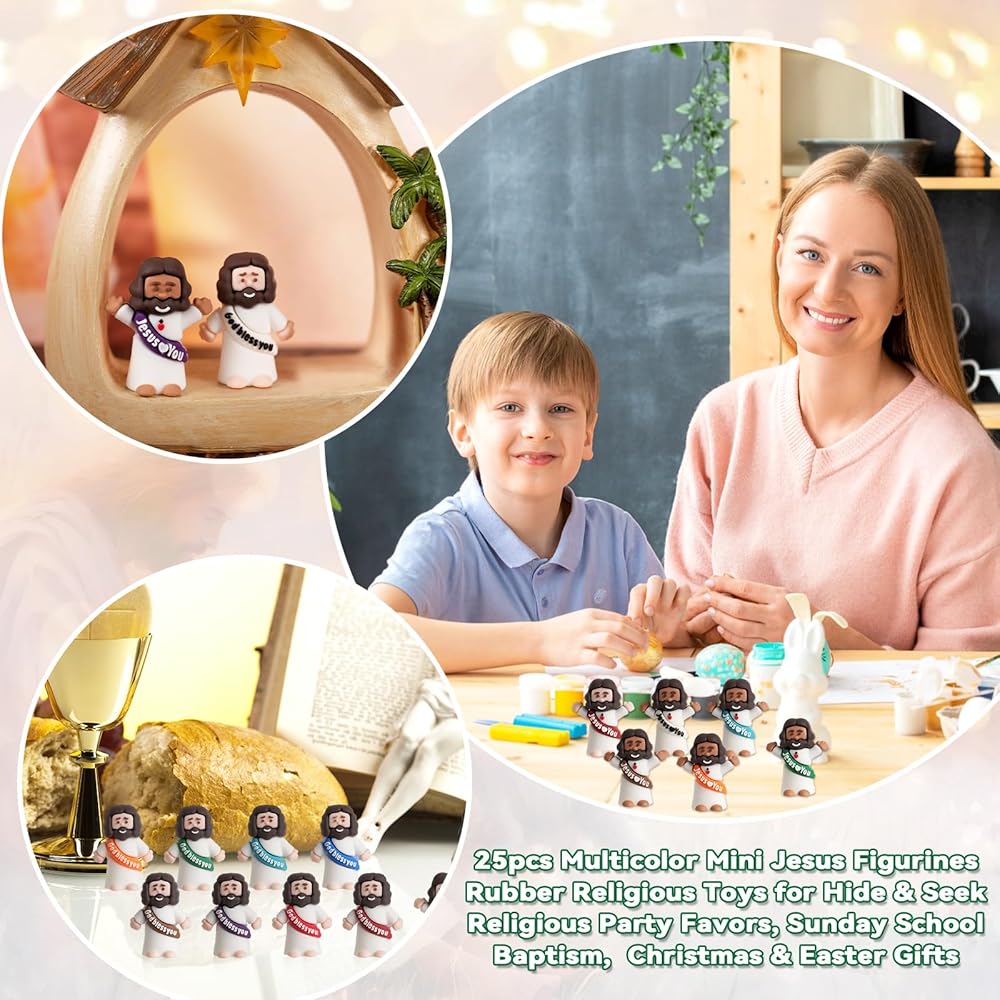 25 PCs شخصيات يسوع الصغيرة ، تماثيل يسوع Mini Mini Mini بالجملة ، الأطفال الصغير الصغير يسوع ، ألعاب مطاطية للاختباء والسعي للحصول على هدايا عيد الميلاد ، صيد بيض عيد الفصح ، اللوازم المدرسية الأحد ، الأطفال والبالغين