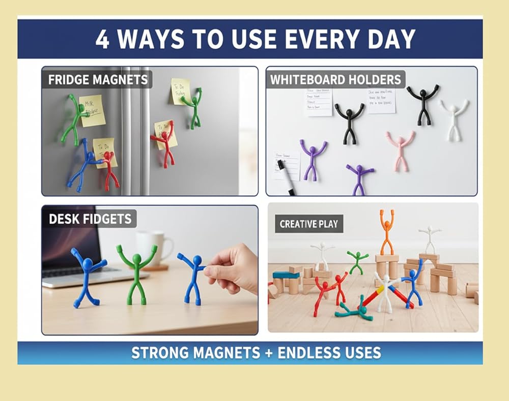 Multipurpose Magic في أي مكان: التمسك بالثلاجات أو الألواح البيضاء أو الأسطح المعدنية للمنزل أو المكتب أو الخزانة المدرسية أو ديكور المكتب - الزوجي كمغناطيات قابلة للتحصيل أو دعائم سرد القصص.