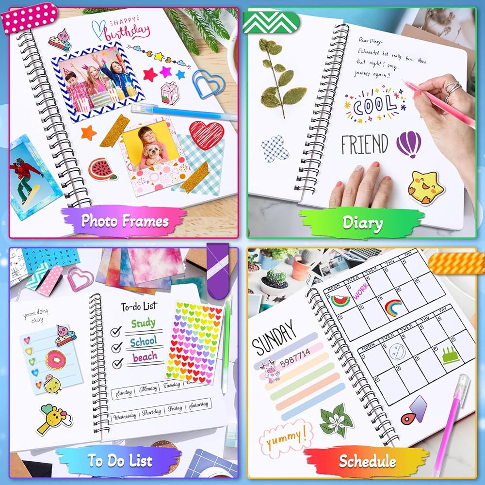 الكل في صندوق واحد: تتضمن مجلة DIY للفتيات كل ما يحتاجه كل ما يحتاج إلى إنشاء مجلة مخصصة ، وتشمل مجلة فارغة ، وأقلام ملونة ، وملصقات ، وملصقات ، وإطار ورقي ، وعناصر زخرفية ، وما إلى ذلك