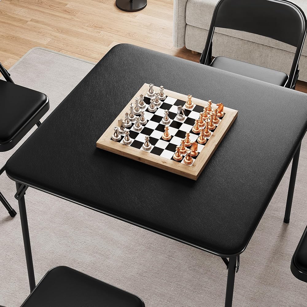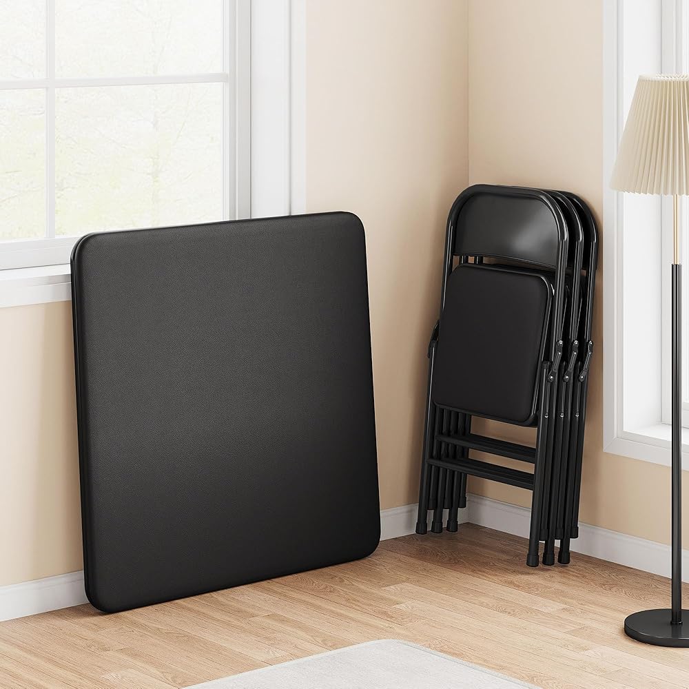 طاولة طعام قابلة للطي من Garveehome 5 قطع ، طاولة مطبخ قابلة للطي أسود مع طاولة جلدية فو و 4 كراسي مبطنة ، تصميم لتوفير الفضاء ، طاولة مربعة حديثة لغرفة الطعام ، المساحات الصغيرة