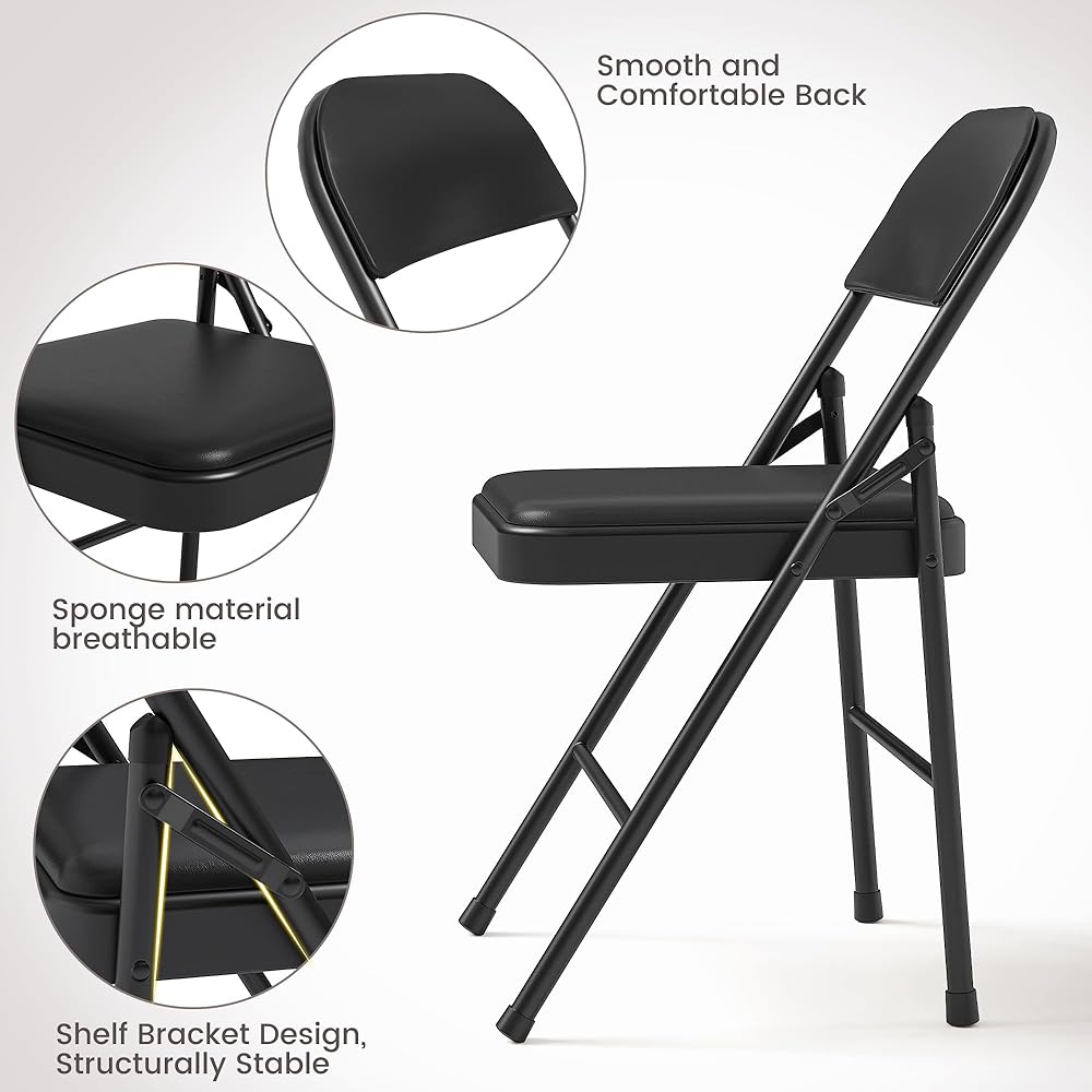 تصميم مدروس: طاولة ومجموعة غرفة الطعام القابلة للطي ومجموعة غرفة الطعام تحتوي على إطار معدني قوي ، وسادة مقعد مصنوعة من جلد PU ، وإسفنجة عالية الجودة في الداخل لتزويد المستخدمين بالراحة