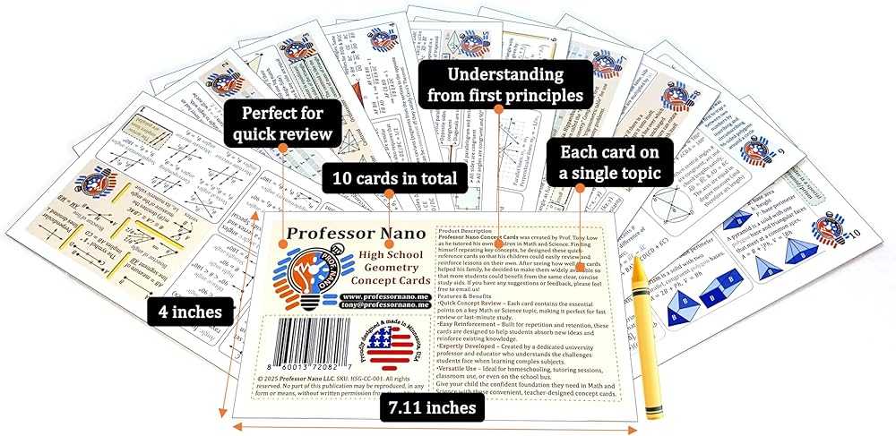 تحتوي كل بطاقة على النقاط الأساسية في موضوع الرياضيات أو العلوم الرئيسية ، مما يجعلها مثالية للمراجعة السريعة أو دراسة اللحظة الأخيرة. تم تصميم هذه البطاقات لتكرارها والاحتفاظ بها ، لمساعدة الطلاب على استيعاب أفكار جديدة وتعزيز المعرفة الحالية.