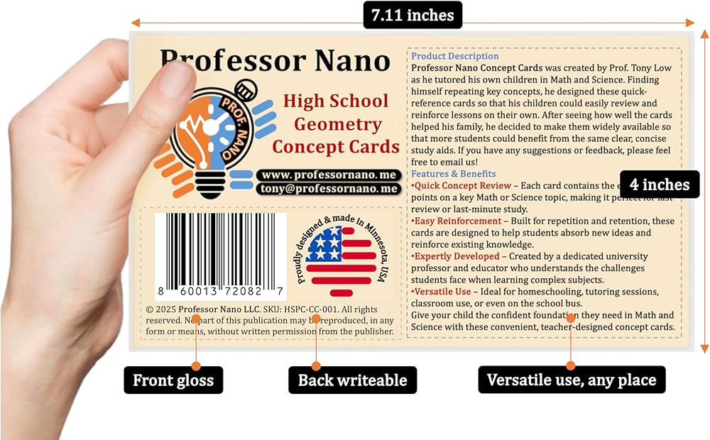 تم تطويره وخبرة من قبل أستاذ ومعلم جامعي مخصص يتفهم التحديات التي يواجهها الطلاب عند تعلم مواد معقدة. تحتوي كل بطاقة على النقاط الأساسية في موضوع الرياضيات أو العلوم الرئيسية ، مما يجعلها مثالية للمراجعة السريعة أو دراسة اللحظة الأخيرة.