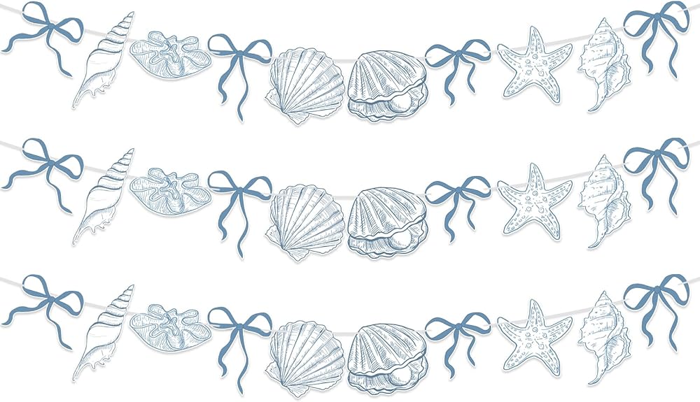 3 حزمة صيف لافتة صدف ديكور ديكور حفلات الحفلة لوازم عيد ميلاد ديكور ديكور الأزرق القوس نجم البحر وتصبح صدف جارلاند أوشن شاطئ البحر الساحلي للنساء الرجال عرض طفل