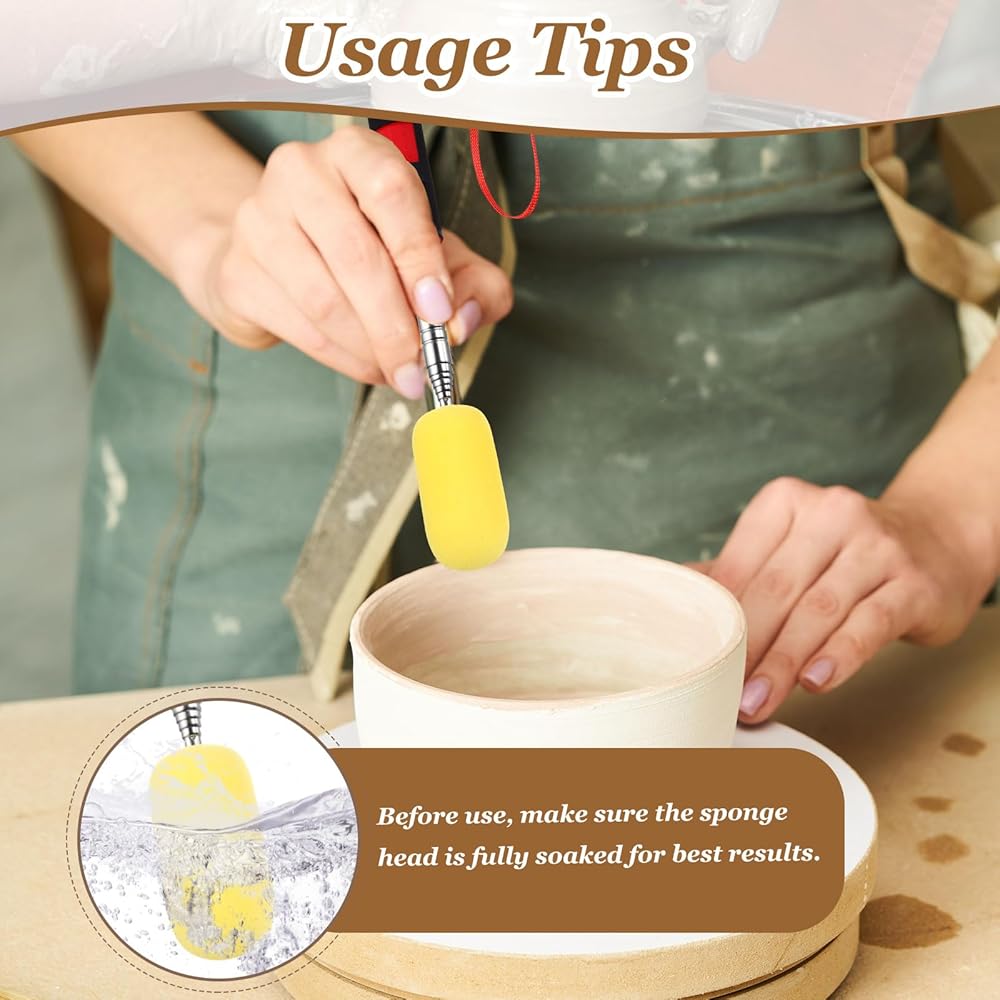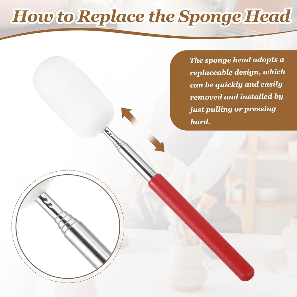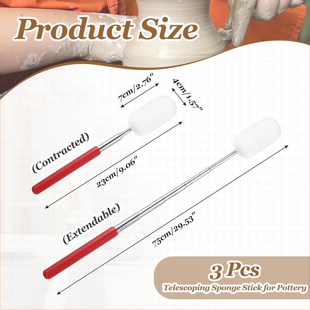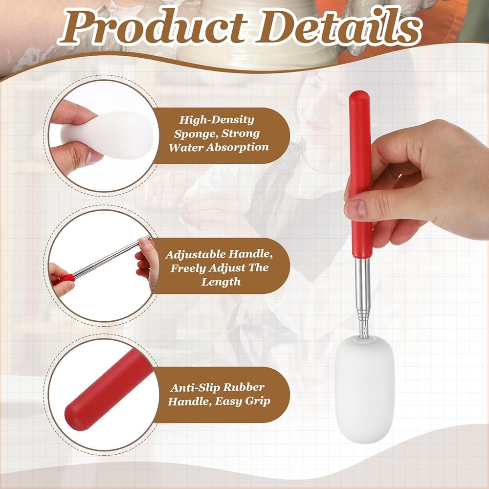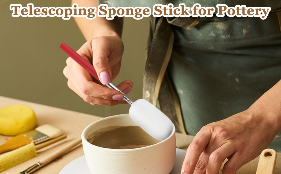 عصا الإسفنج التلسكوبية مناسبة لإزالة المياه الزائدة من الفخار الطويل أو الضيق ، مثل المزهريات الطويلة ، والسيراميك الرقيق ، وما إلى ذلك ، مما يضمن أن السيراميك تجف بسرعة. إنها أيضًا أداة مريحة لتنظيف الفخار وتشكيل الفخار الضيق والعميق ، وهو مناسب جدًا للمبتدئين في الفخار وعشاق الفخار.
