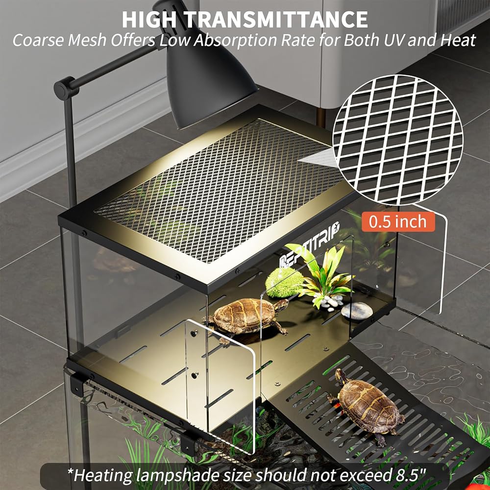 مادة البولي كربونات: يضمن إرسال الضوء العالي الاختراق الكامل للضوء من خلال منصة التشمس ، مما يخلق بيئة مشرقة ودافئة لسلحفك للاستحسان. تتيح لك الشفافية العالية للبولي كربونات مراقبة أنشطة السلاحف الخاصة بك بوضوح ، والحفاظ على رؤية ممتازة مع تعزيز النداء الجمالي لمنصة التمساح بالسلاحف