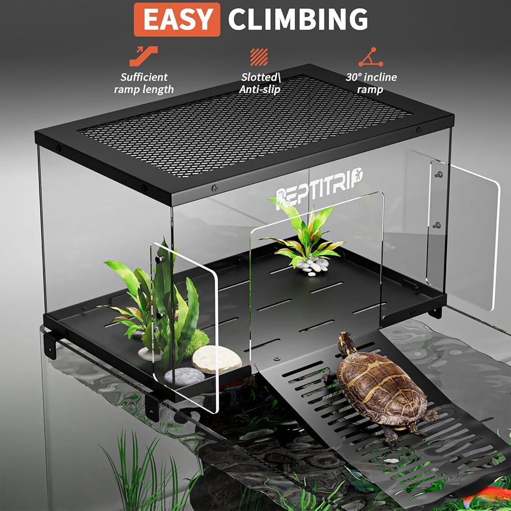 المنحدر غير المنحدر: يتم تجويف منحدر السلاحف جزئيًا لتعزيز قبضة ومنع الانزلاق عندما تتسلق السلاحف المنحدر. يوفر المنحدر دعمًا قويًا ومستقرًا ، مما يضمن أن السلاحف من جميع الأحجام يمكن أن تتسلق بسلاسة وبدون عناء