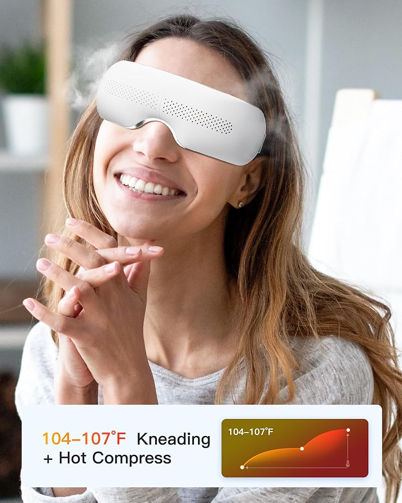 💕【HEATING FUNCTION】: 104-107°F kneading + hot compress to promote blood circulation around the eyes, effectively relax muscles, and help relieve eye and dryness. Large-area hot compress can cover the entire eye area and surrounding areas, providing you with a comfortable hot compress experience.