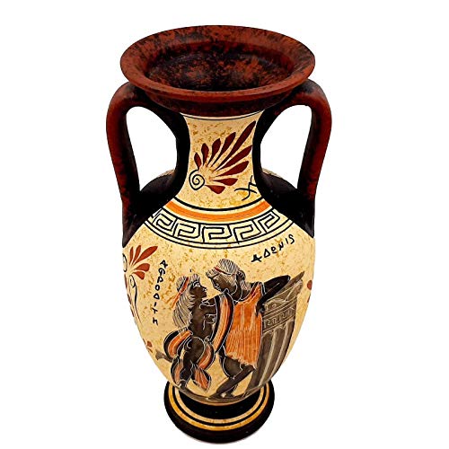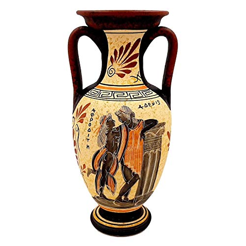Enhance your decor with a Greek Amphora from Archaic period 6th century BC . Amphora was Ancient greek vase used for storing wine and olive Fisrt side:It is shows Adonis with Aphrodite the goddess of love,beauty,passion and pleasure.Aphrodite and Adonis is a classic myth about love, lust, passion, jealousy, rejection and death, and a proof that no one could escape from the powerful arrows of God Eros. Second side: Is shows Erato. In Greek mythology, Erato is one of the Greek Muses, which were inspirational goddesses of literature, science, and the arts. Net weight: 1 kgr(2,21lbr), Height:26cm (10,14in)