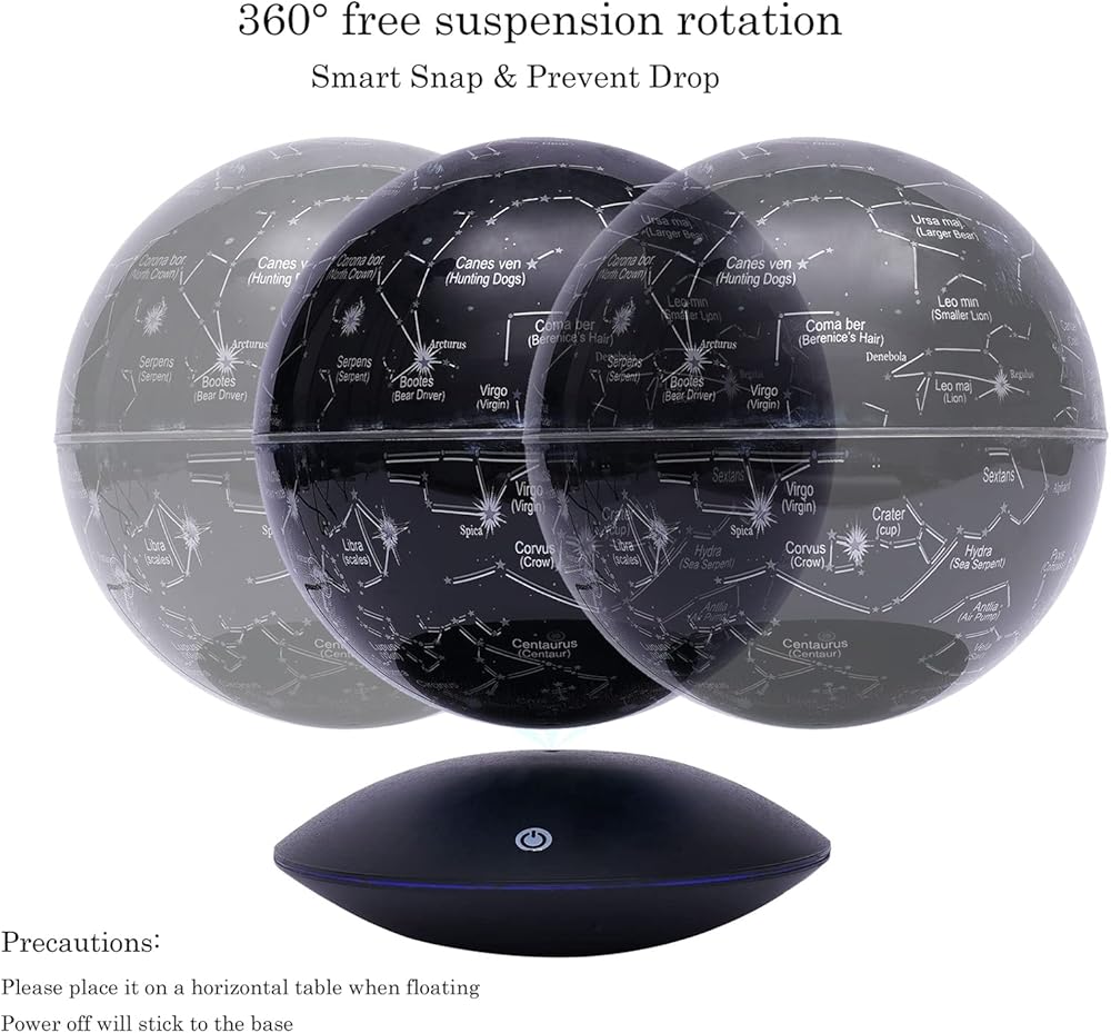 This magnetic levitating globe is suitable for decoration or teaching aids in bedrooms, living rooms, study rooms, children's rooms, themed cafes, planetariums, classrooms, offices, and other places.