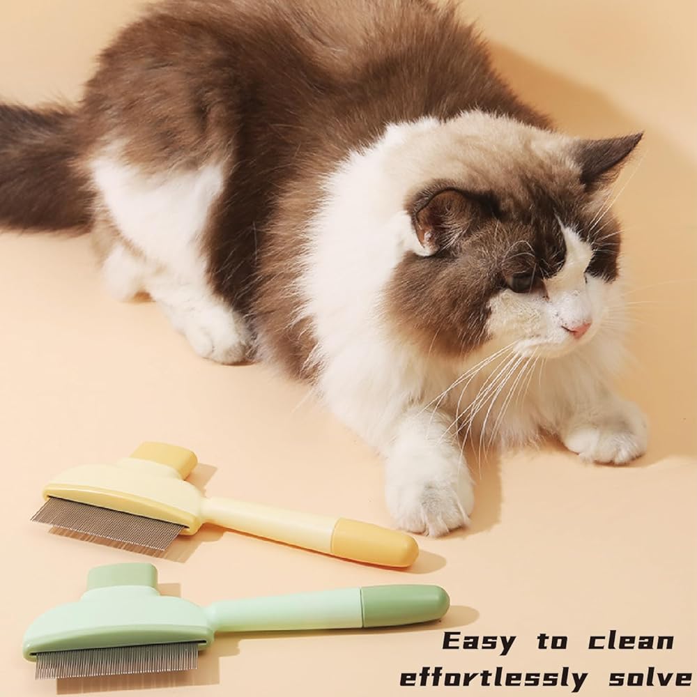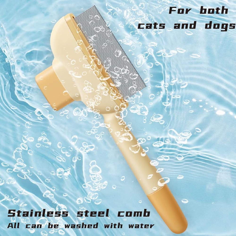 Dual-Layer Stainless Steel Teeth for Ultimate Comfort ✔️ Gentle on Skin – Rounded tips prevent scratching while effectively detangling fur. ✔️ Deep Combing – Tightly spaced teeth remove fleas, dander, and loose hair effortlessly.