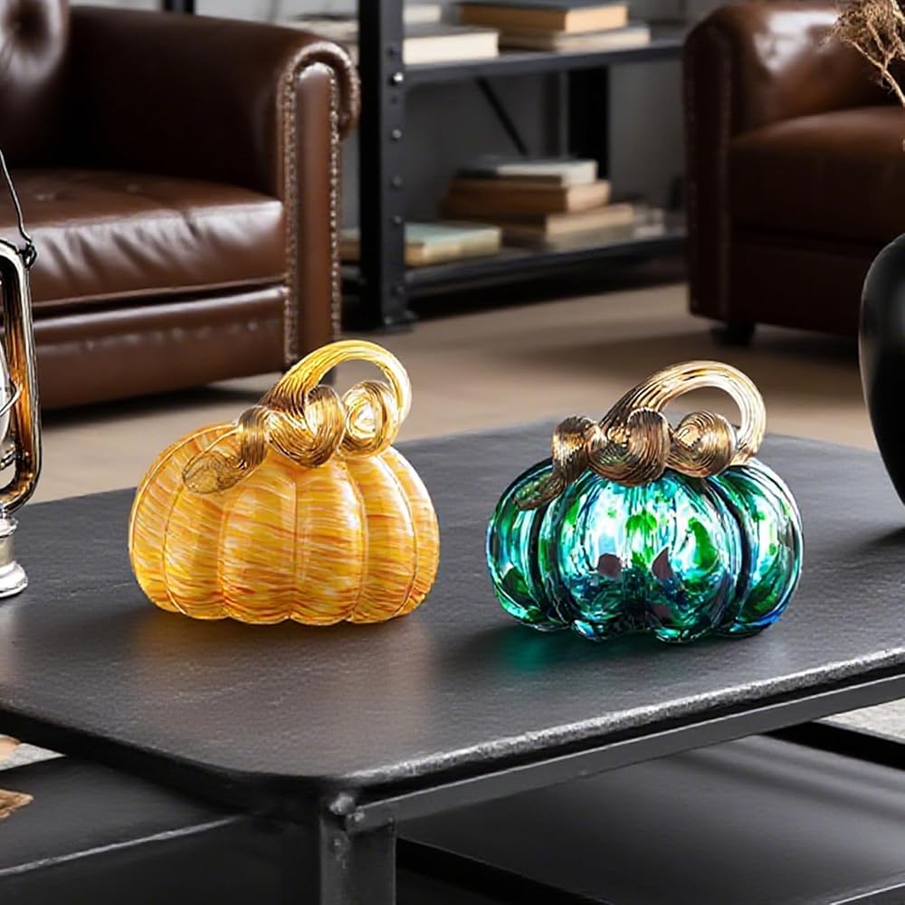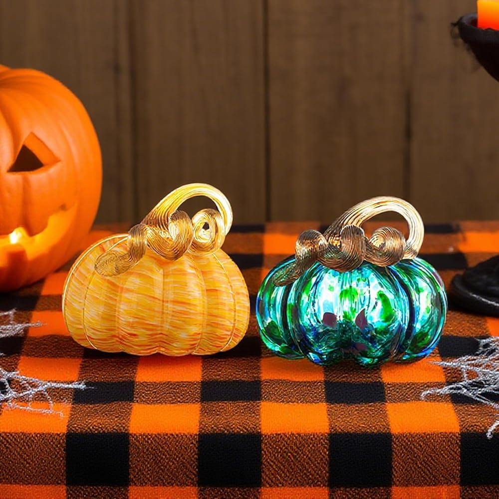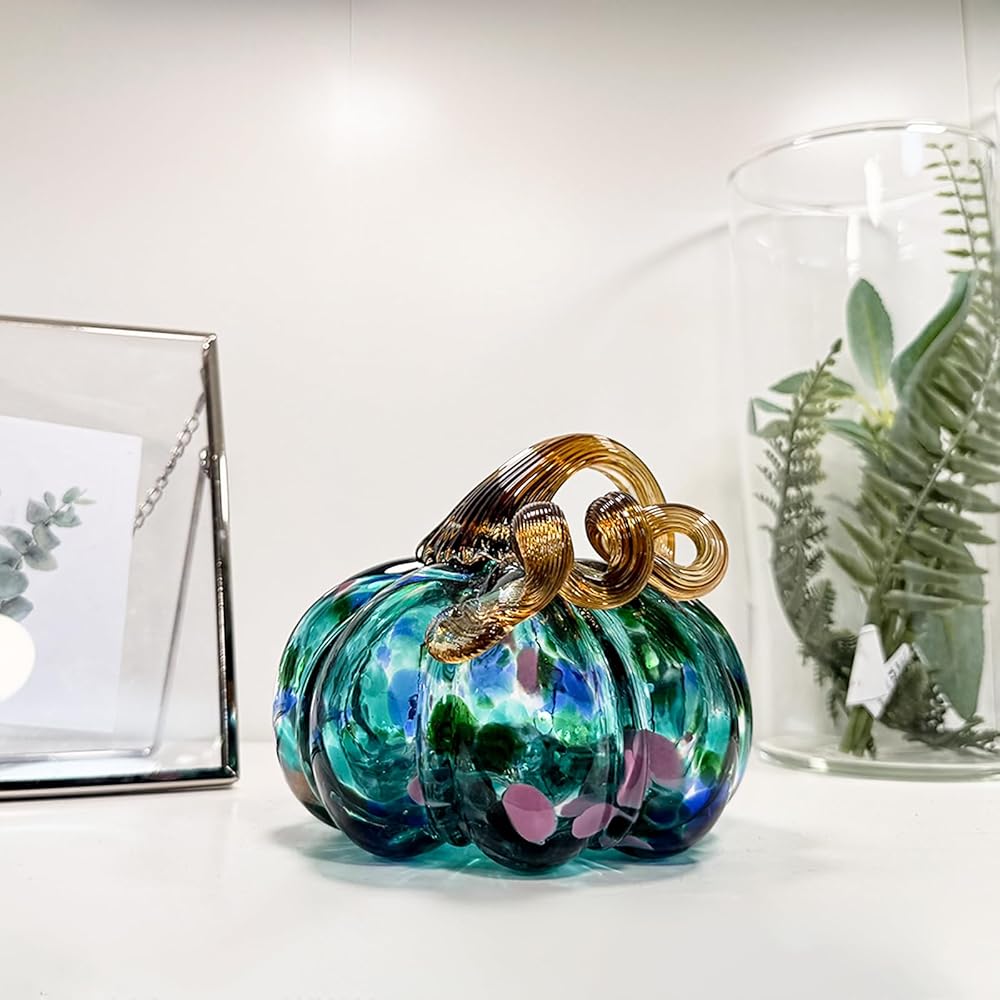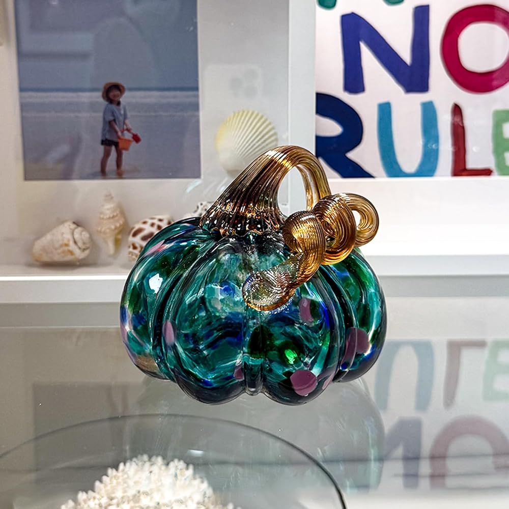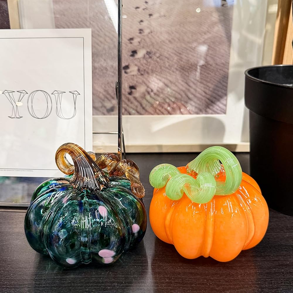 Perfect Autumn & Holiday Centrepiece: هذا القرع الزجاجي المنفوخ هو الحجم المثالي لخلق جو دافئ احتفالي. إنه بمثابة قطعة مركزية مذهلة لطاولة الطعام الخاصة بك ، أو إضافة ساحرة إلى رفك ، أو شاشة نافذة ، أو كجزء من مقالة عيد الشكر الاحتفالية ومصورة عيد الهالوين.